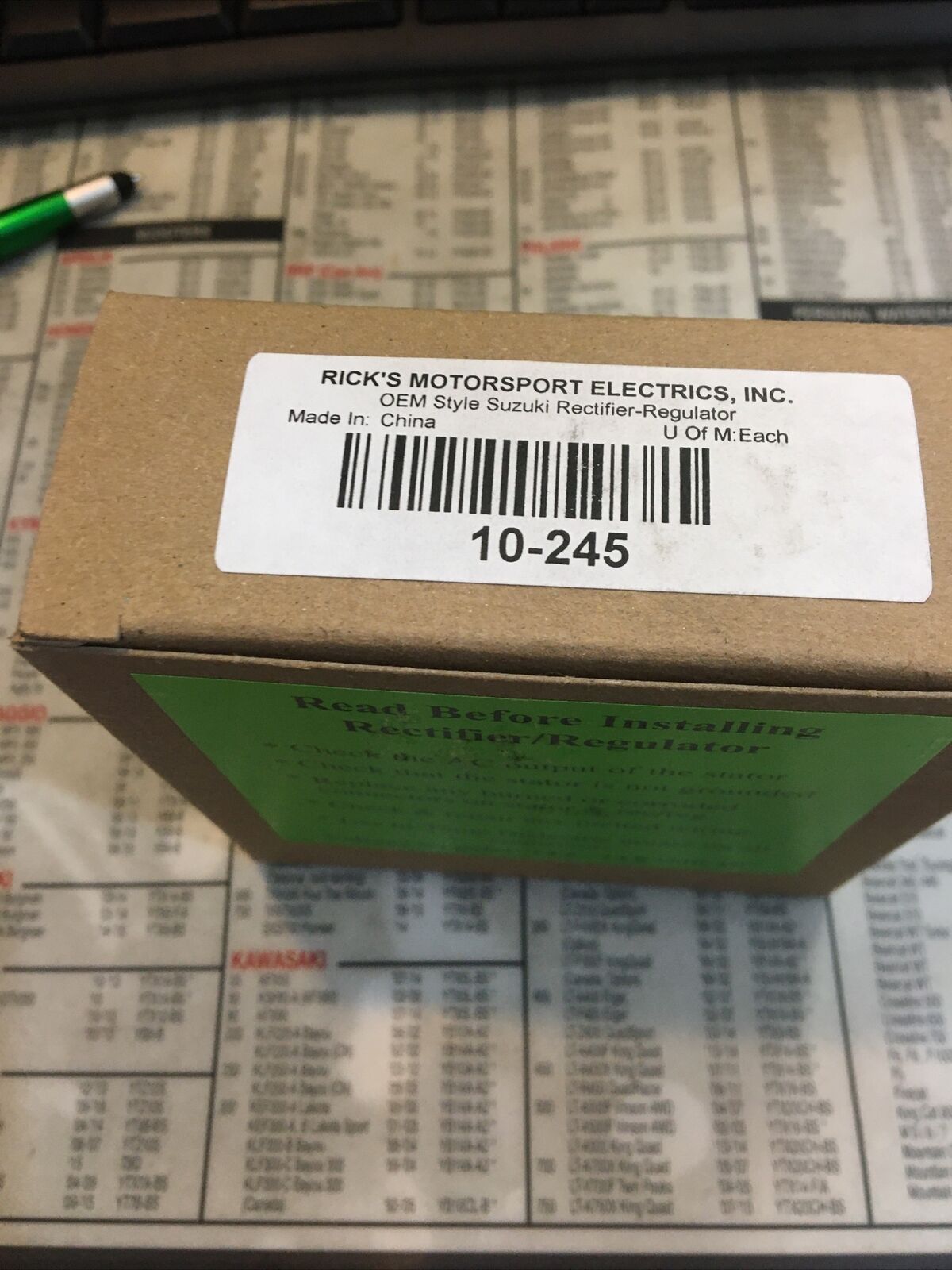 Rick’s Motorsport Regulator/Rectifier Suzuki #2112-0238. Condition is “New”.fits Suzuki 95-97’ GN125E, 99-10’ GZ250 buyer is responsible for fitment and applications no returns