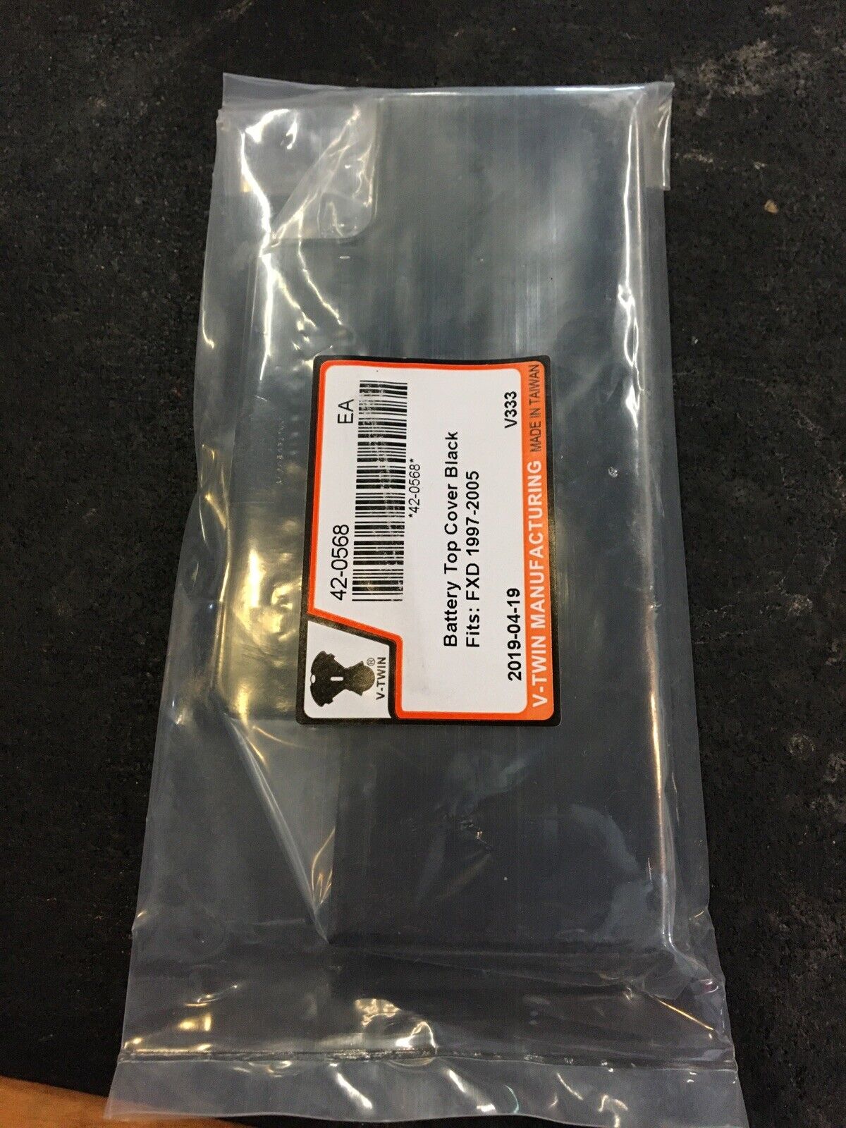 V-Twin Battery Top Cover Black #42-0568. Condition is New.replaces oem #66368-97 fits 97-05’ FXD models buyer is responsible for fitment and applications