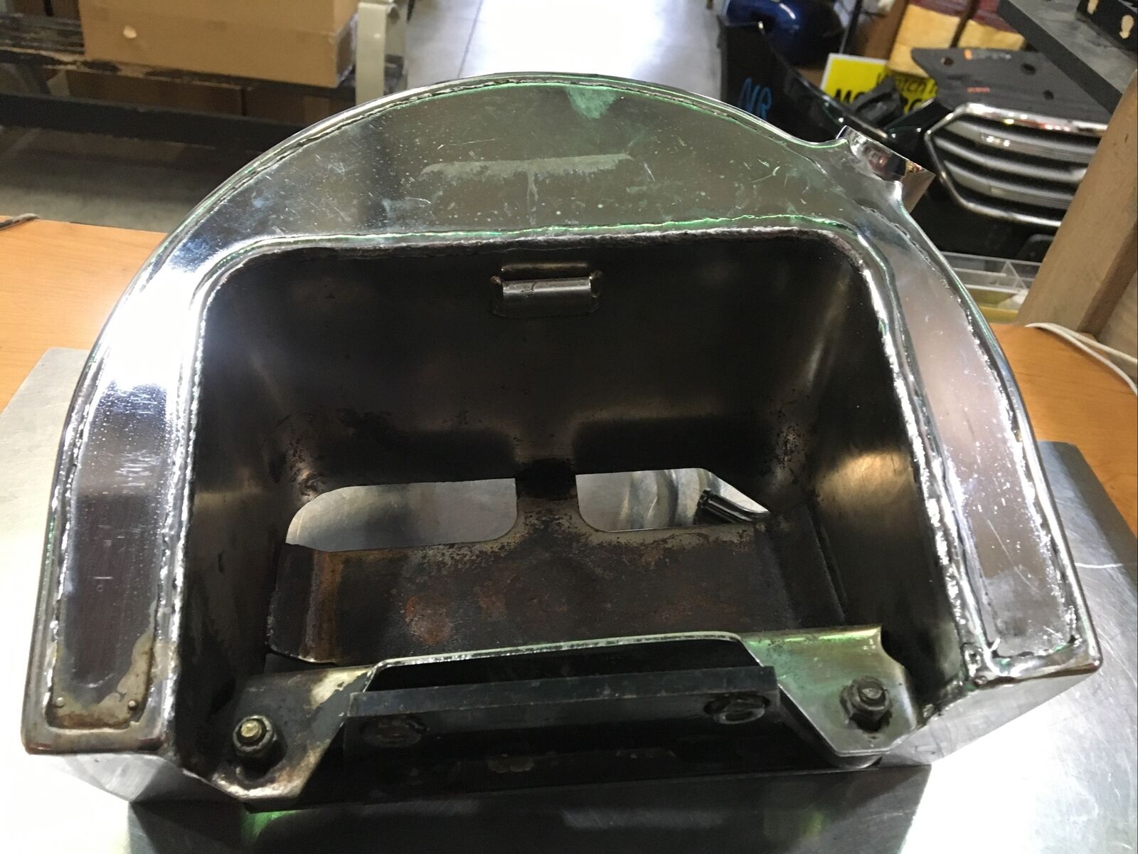 Chrome Oil Tank & Bracket for Harley Softail. Condition is used. Fits 89-99’ Softails replaces oem #62498-91. Buyer is responsible for fitment and applications