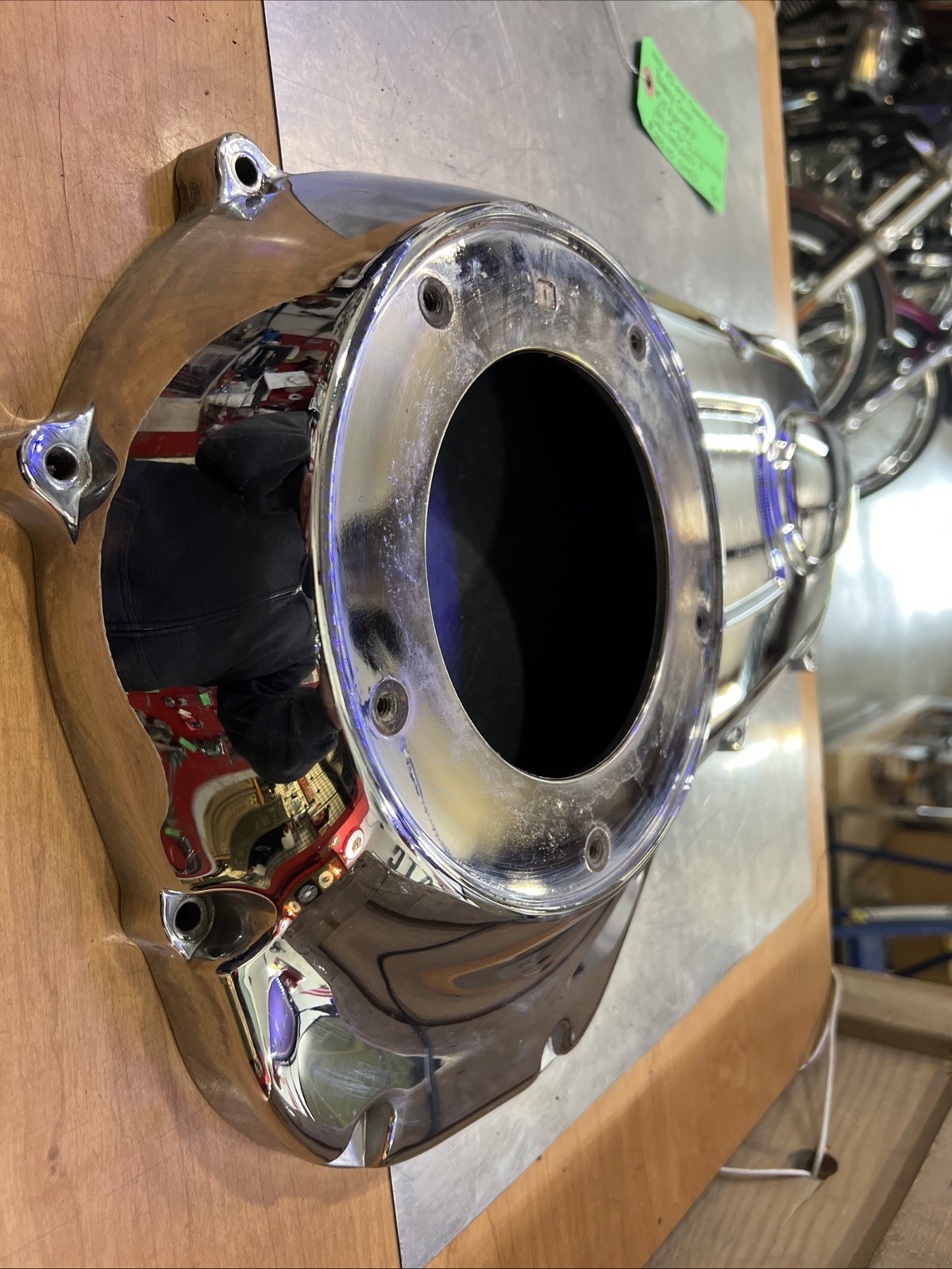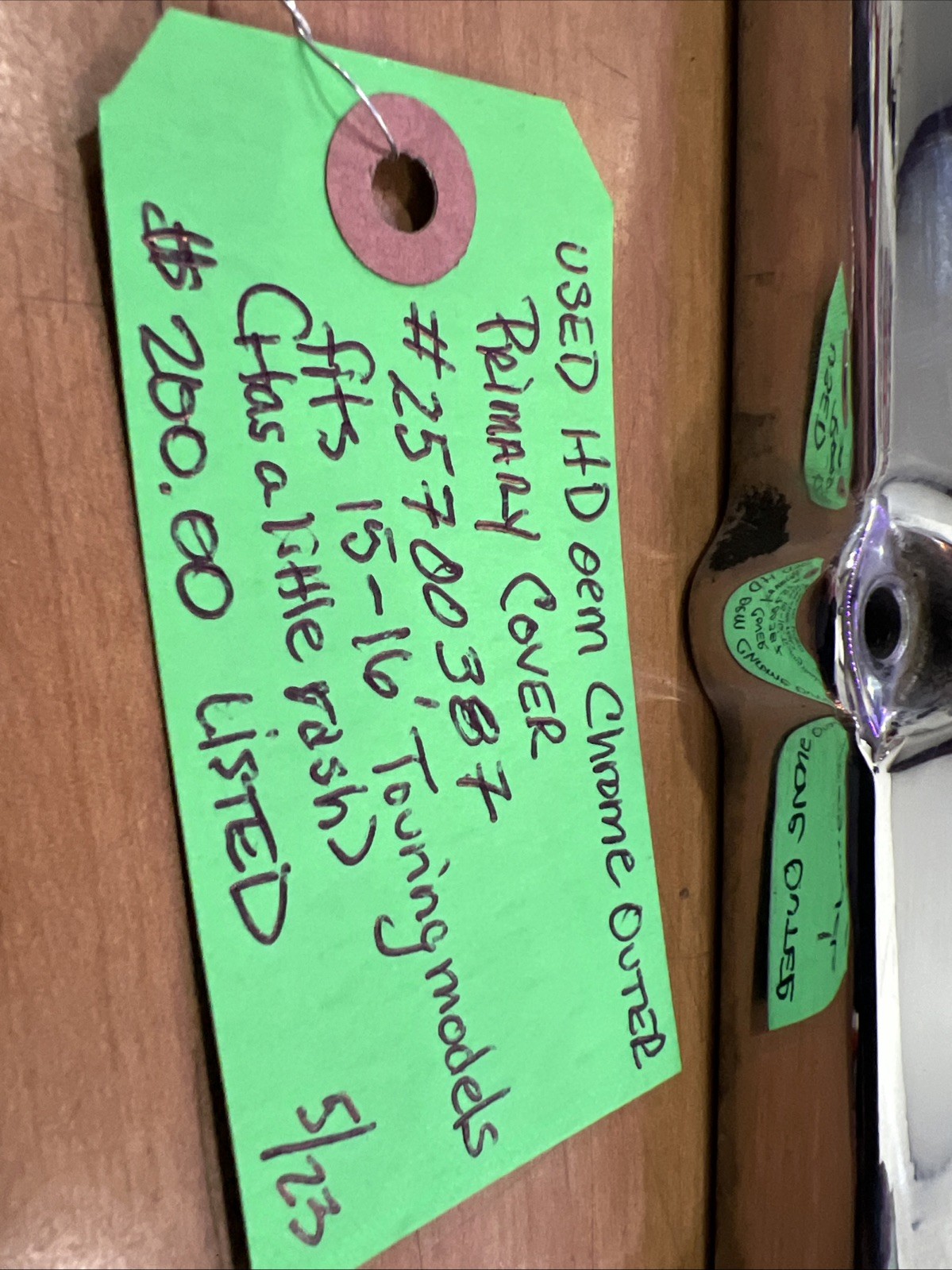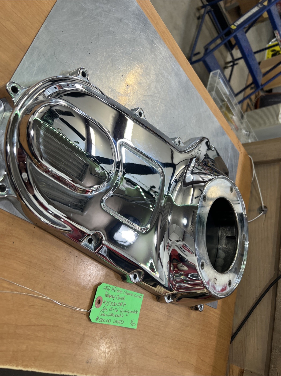 Harley Davidson oem Chrome Outer Primary Cover #25700387. Condition is used. Has a little rash as seen in pictures. Fits 15-16’ Touring models buyer is responsible for fitment and applications