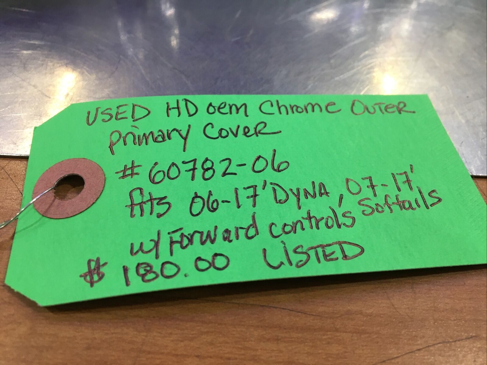 Harley Davidson oem Chrome Outer Primary Cover #60782-06. Condition is used. Has some rash on it as seen in pictures.Fits 06-17’ Dynas, 07-17’ Softails with forward controls buyer is responsible for fitment and applications