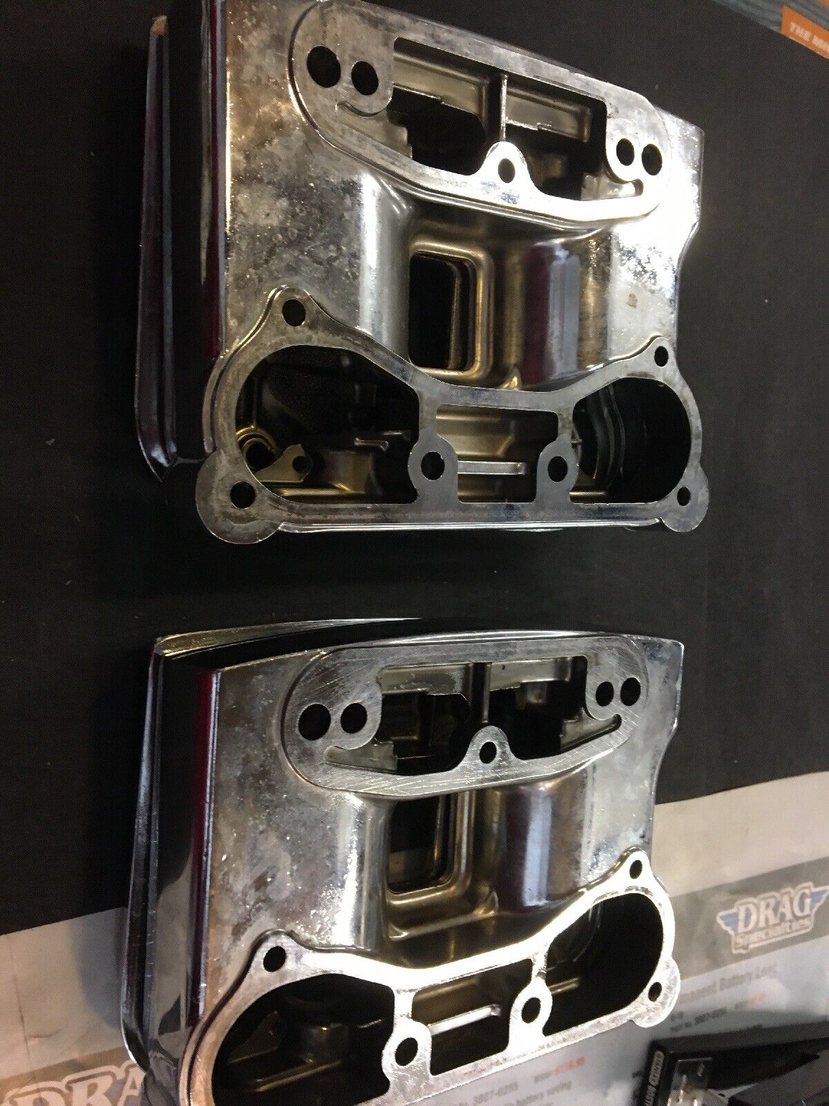 Crafted with precision and attention to detail, these chrome rocker boxes are a testament to Harley-Davidson’s commitment to quality and craftsmanship. The chrome finish adds a touch of elegance and sophistication to the engine, making it stand out from the crowd. Despite being a used item, these rocker boxes are in good condition, with only minor pitting and peeling in the chrome, which adds a touch of character and history to the piece.