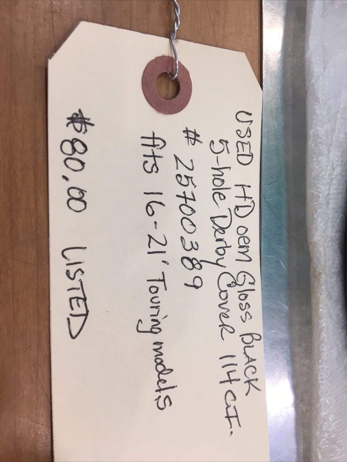 Harley Davidson oem Gloss Black 5-Hole Derby Cover 114CI #25700389. Condition is used. Fits 16-21’ Touring models buyer is responsible for fitment and applications