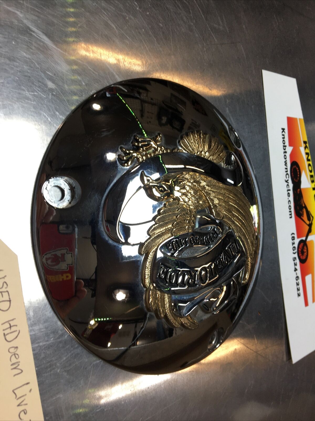 Harley Davidson oem Live To Ride Derby Cover #25391-90T. Condition is used. Fits 70-98’ Big Twins buyer is responsible for fitment and applications