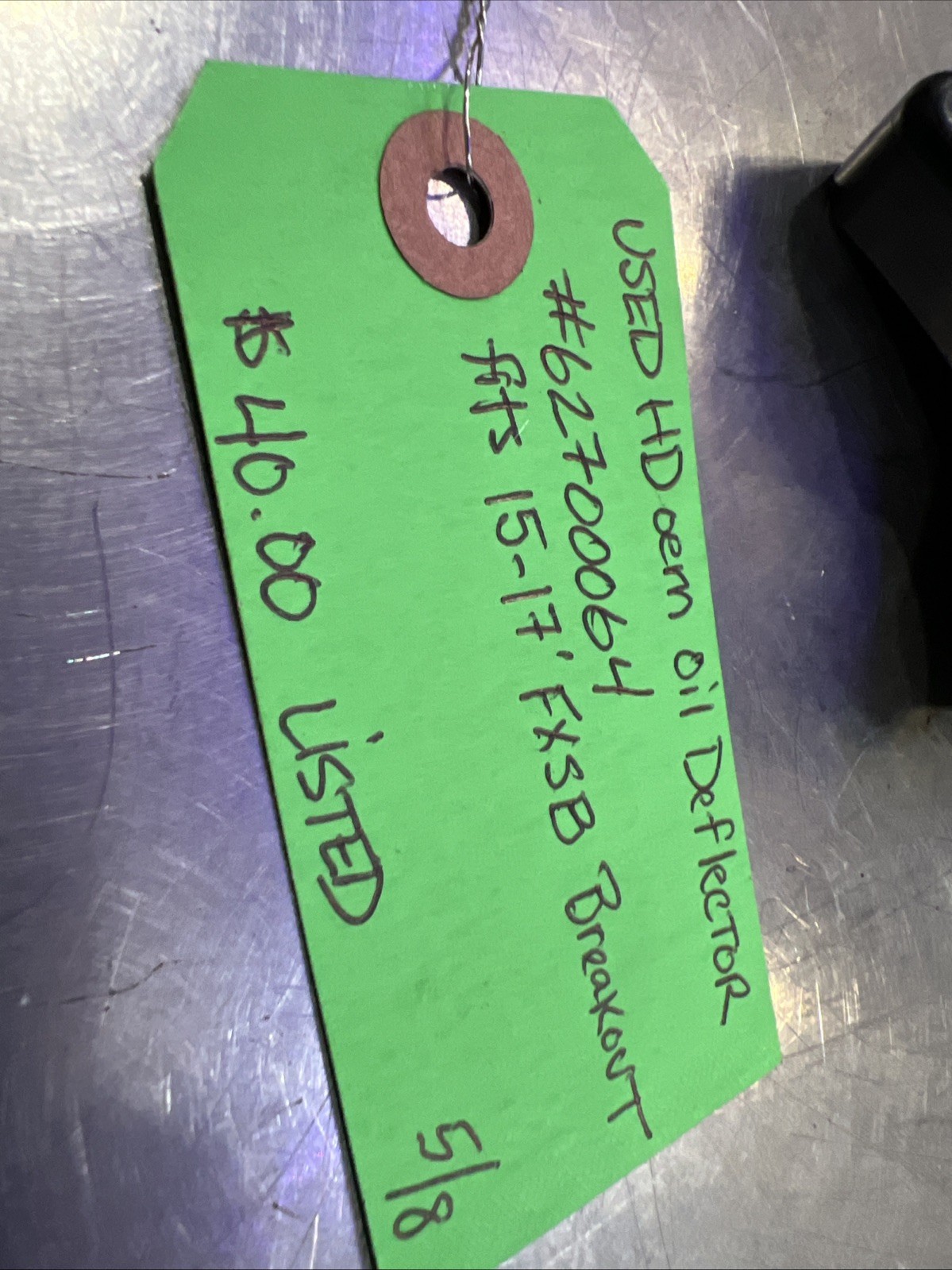 Harley Davidson oem Oil Deflector #62700064. Condition is used. Fits 25-17’ FXSB Breakout buyer is responsible for fitment and applications