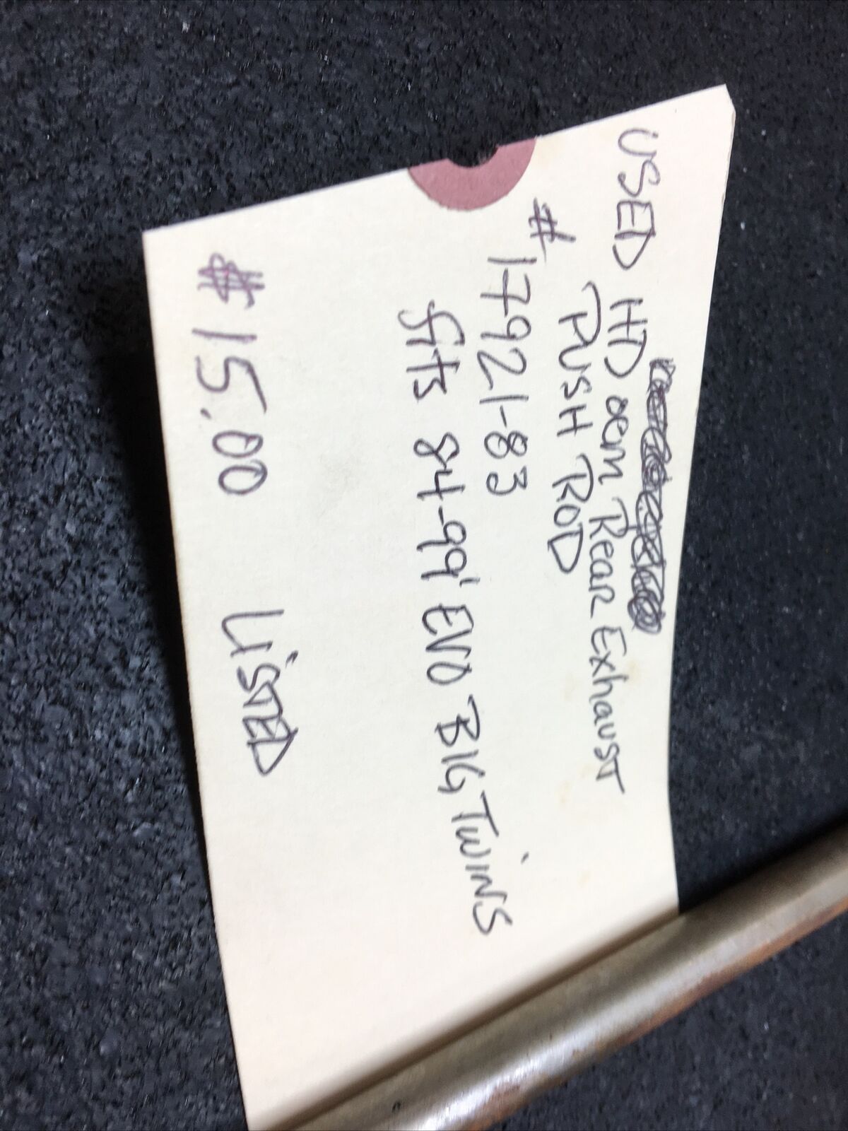 Harley Davidson oem Rear Exhaust Push Rod #17921-83. Condition is used. Fits 84-99’ EVO Big Twins buyer is responsible for fitment and applications