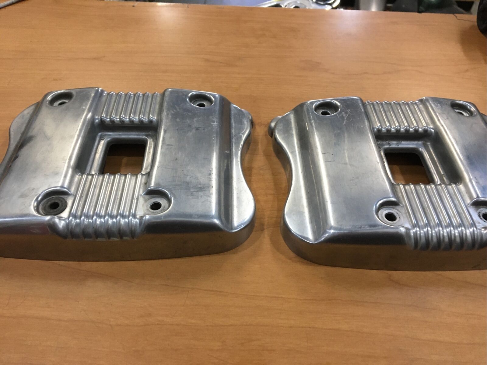 While these covers may be used, they still maintain their durability and functionality, showcasing the resilience and longevity that Harley Davidson is known for. Despite some scratches and spots, these rocker box covers are a testament to the wear and tear of a well-loved motorcycle, adding character and history to your ride.