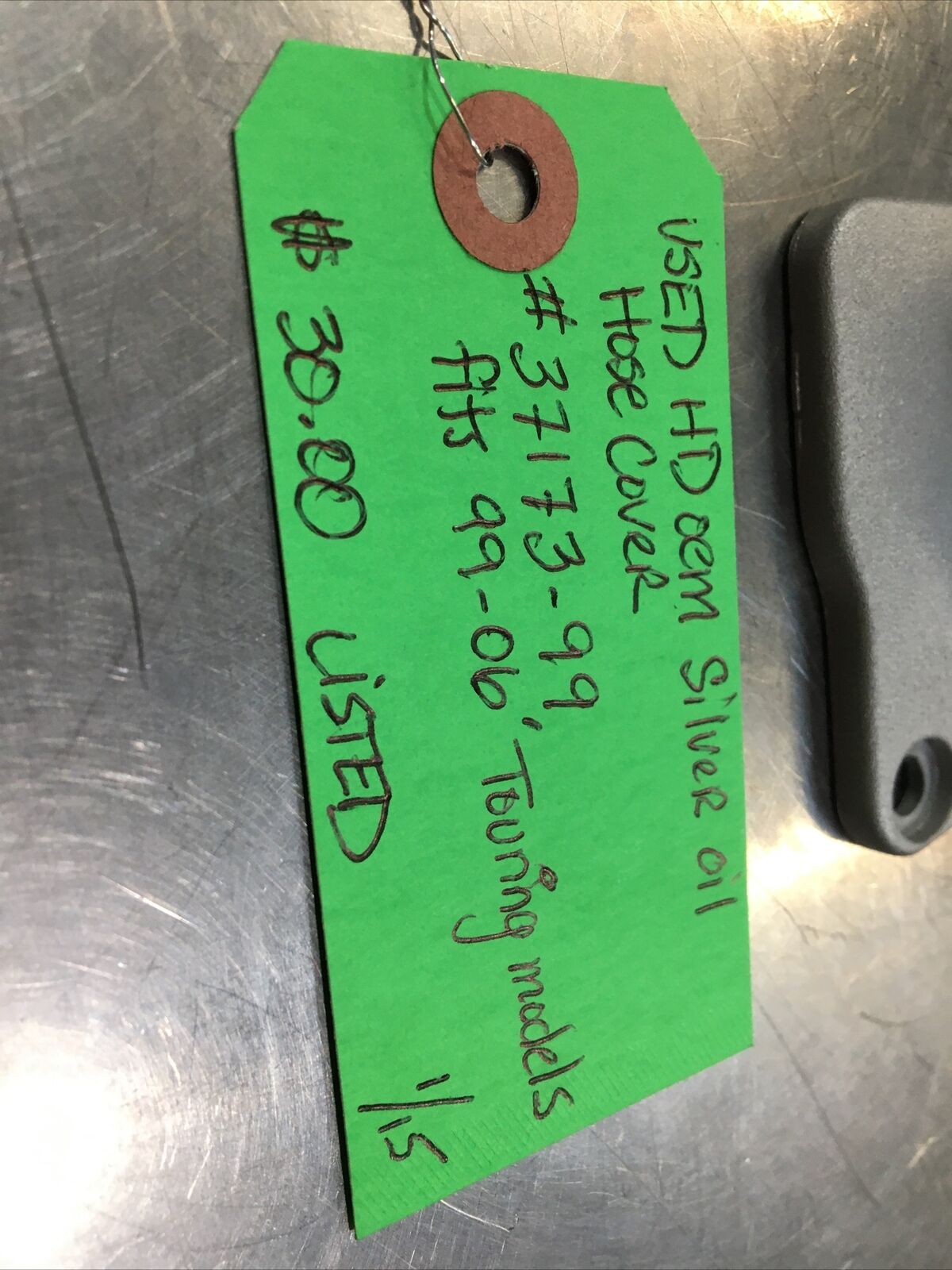 Harley Davidson oem Silver Oil Hose Cover #37173-99. Condition is used. Fits 99-06’ Touring models buyer is responsible for fitment and applications