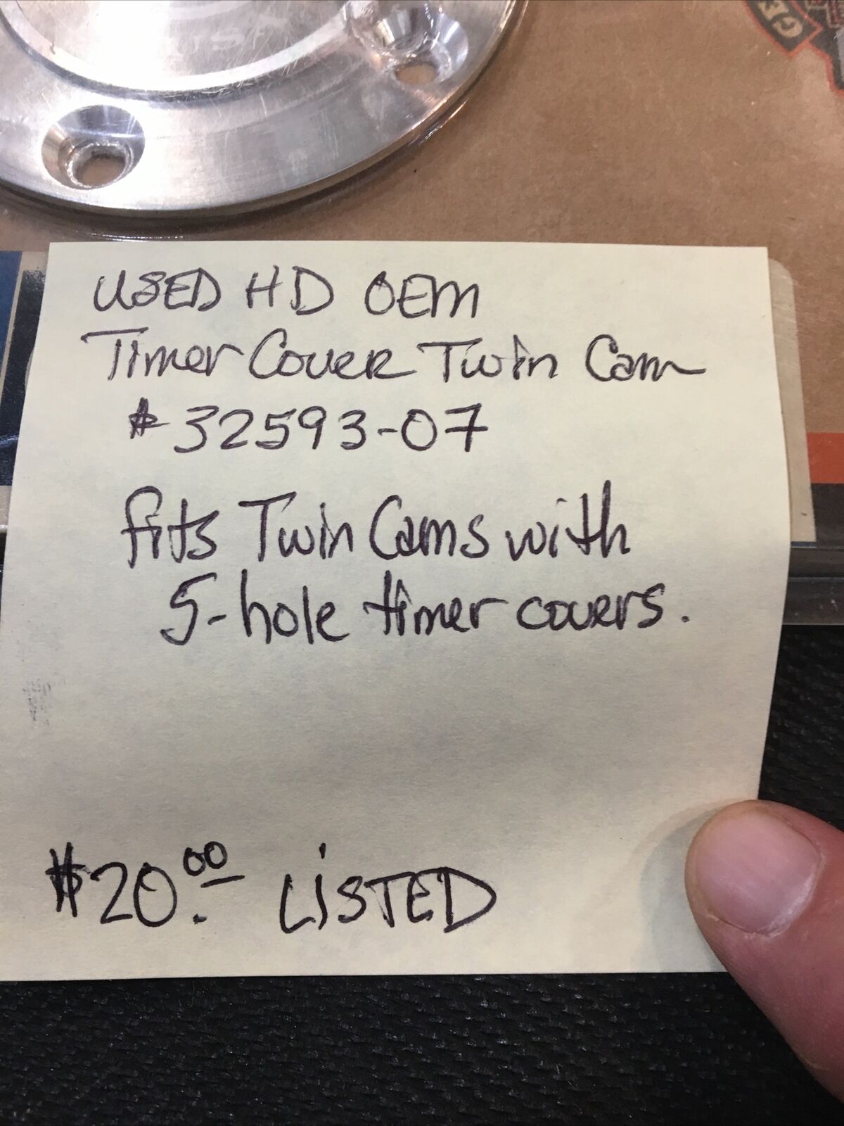 Harley Davidson OEM timer cover Twin Cam #32593-07. Condition is “Used”.fits Twin Cam models with 5 hole timer covers buyer is responsible for fitment and applications no returns