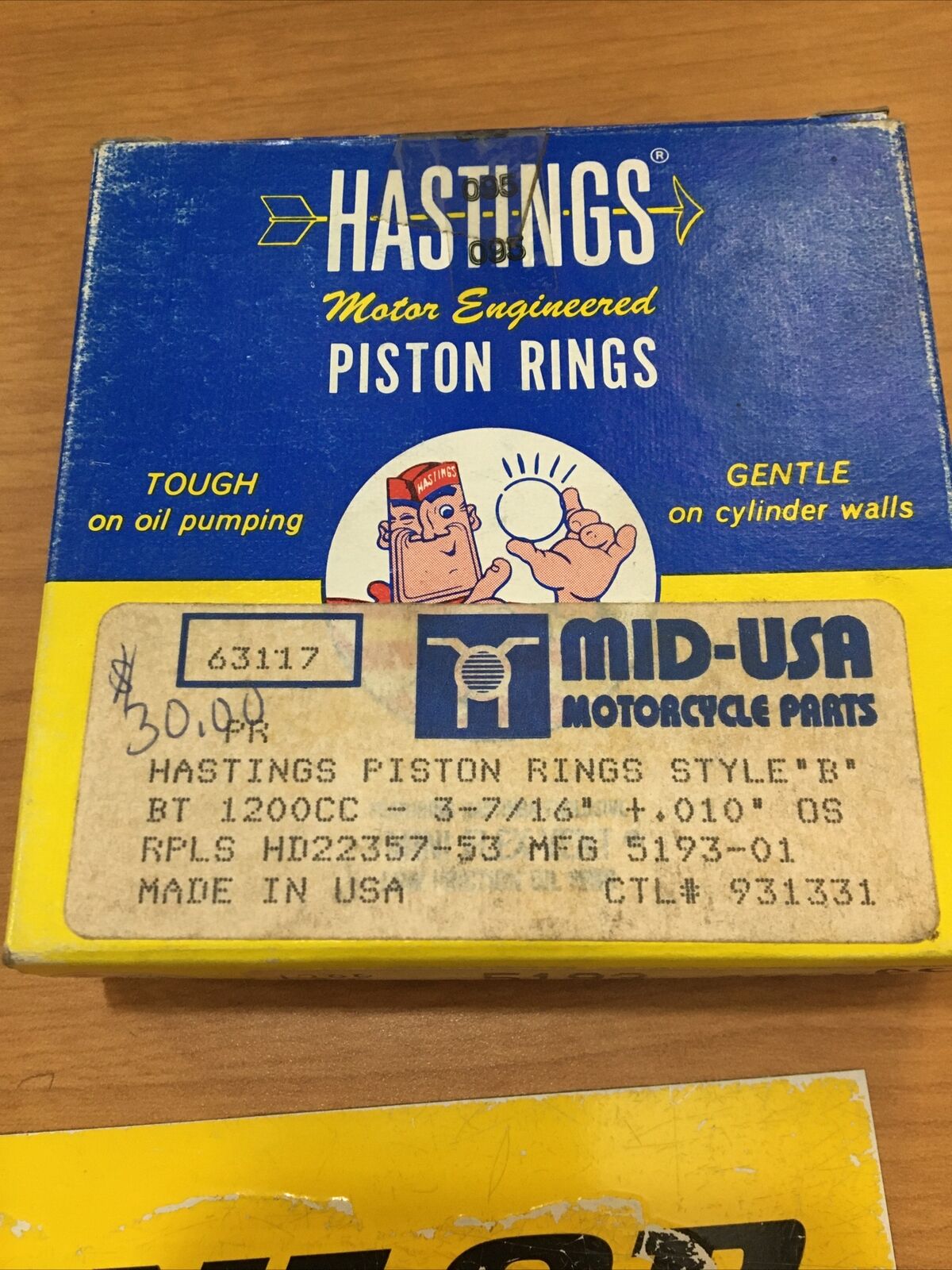 Hastings piston rings style “B” .010” #63117. Fits Harley Davidson Big Twins 1200cc with 3-7/16” pistons buyer is responsible for fitment and applications no returns