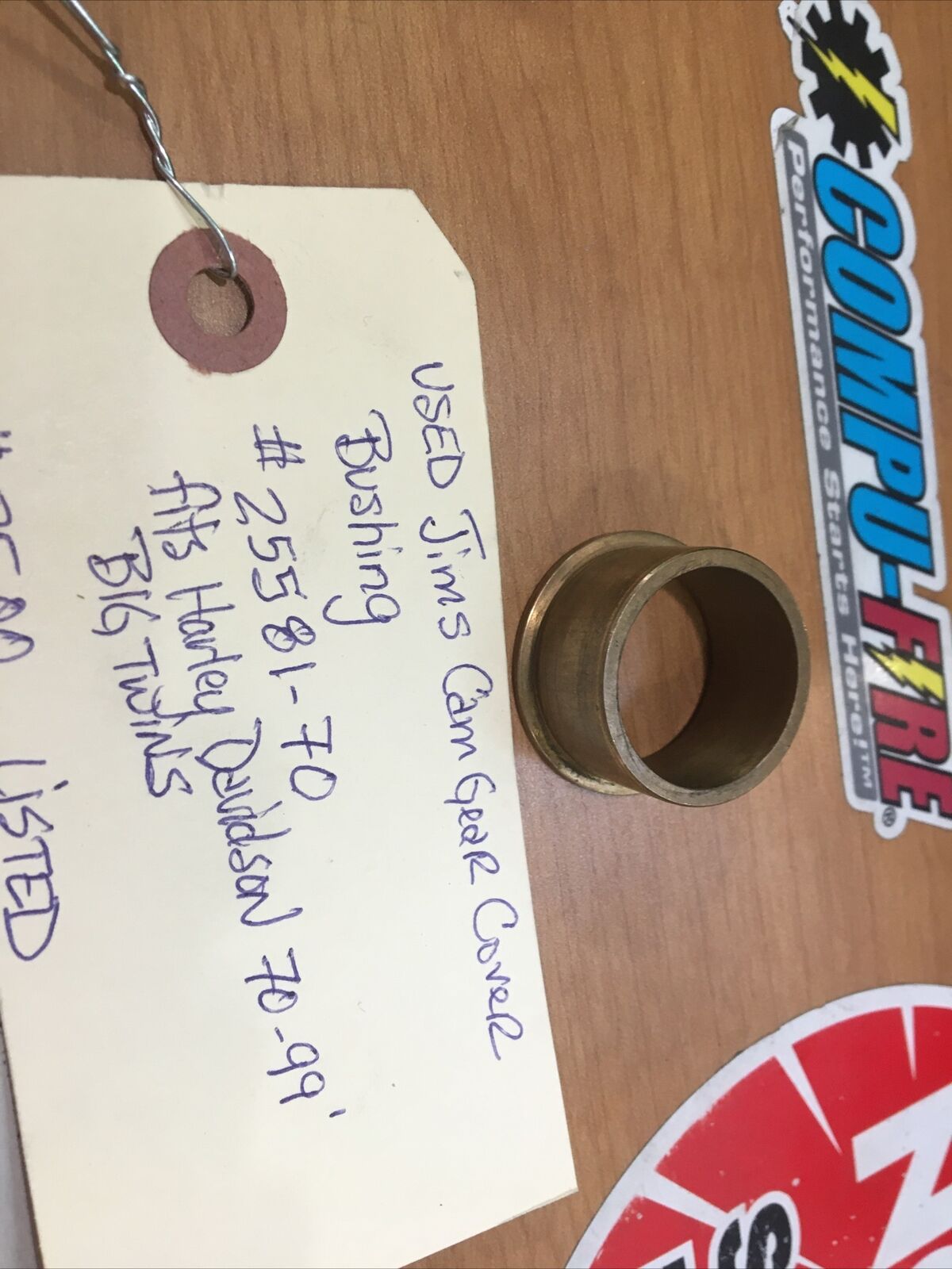 Jims Cam Gear Cover Bushing #25581-70. Condition is used. Fits Harley Davidson 70-99’ Big Twins buyer is responsible for fitment and applications . Std size