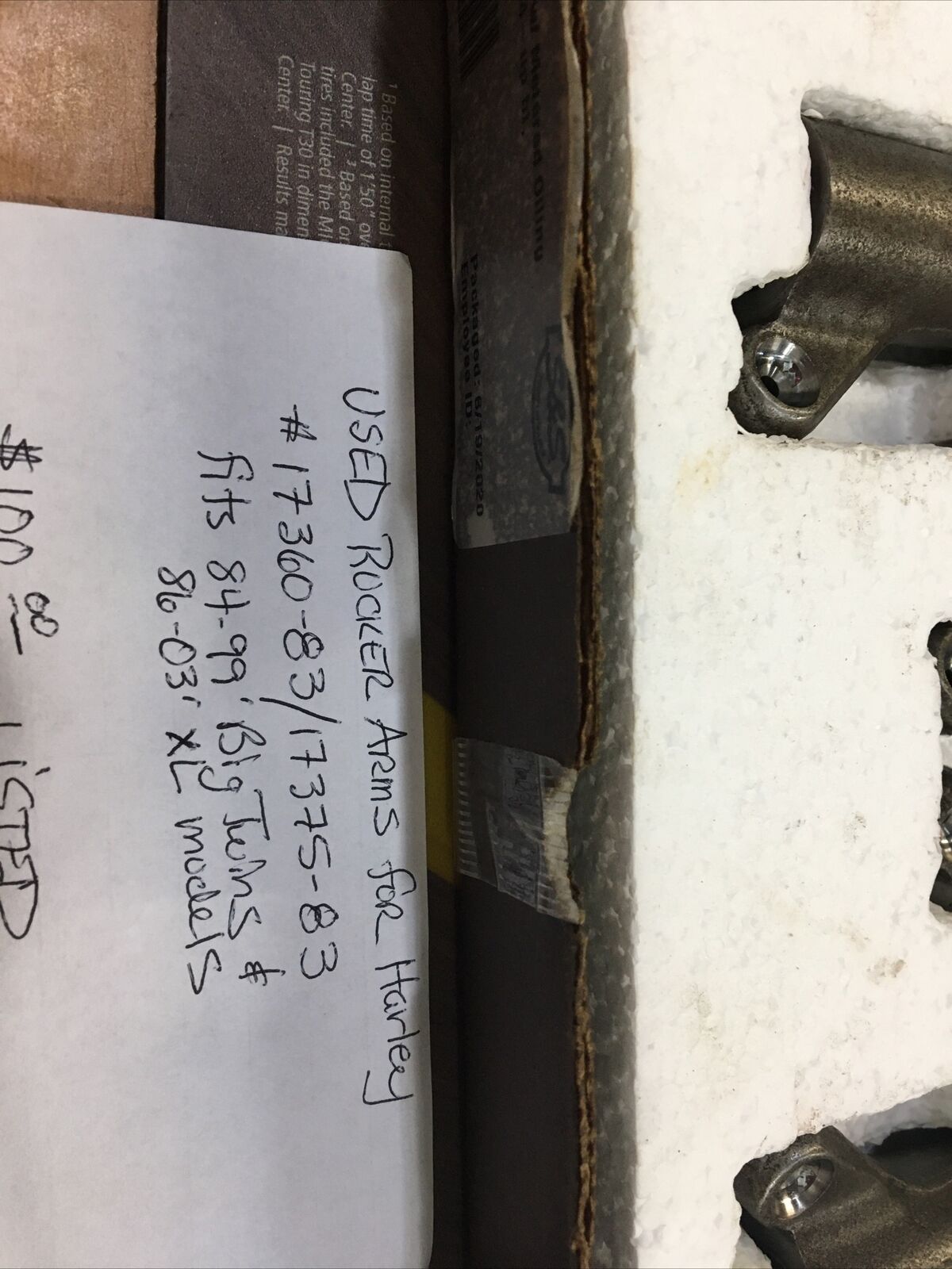Rocker Arms for Harley #17360-83/17375-83. Condition is used. Fits Harley Davidson 84-99’ Big Twins and 86-03’ XL models buyer is responsible for fitment and applications