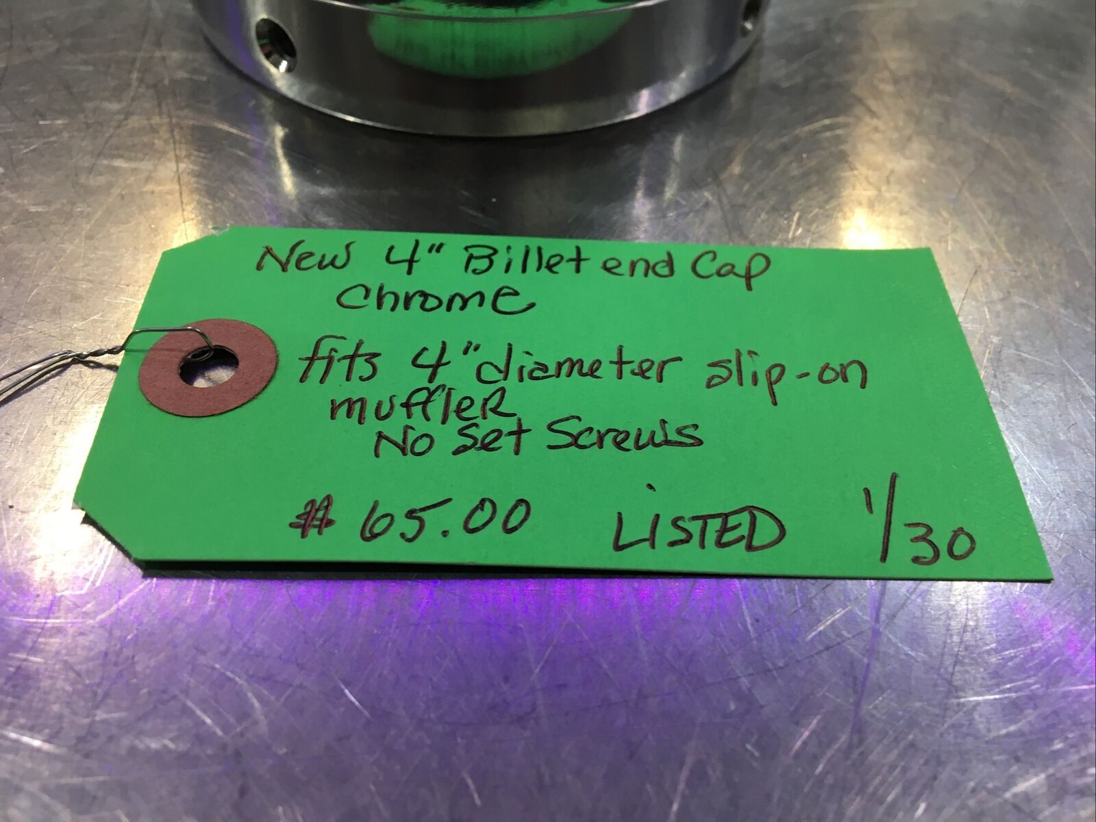 4” Exhaust Billet End Cap Chrome. Condition is new. No set screws. Fits 4” diameter slip-on muffler buyer is responsible for fitment and applications