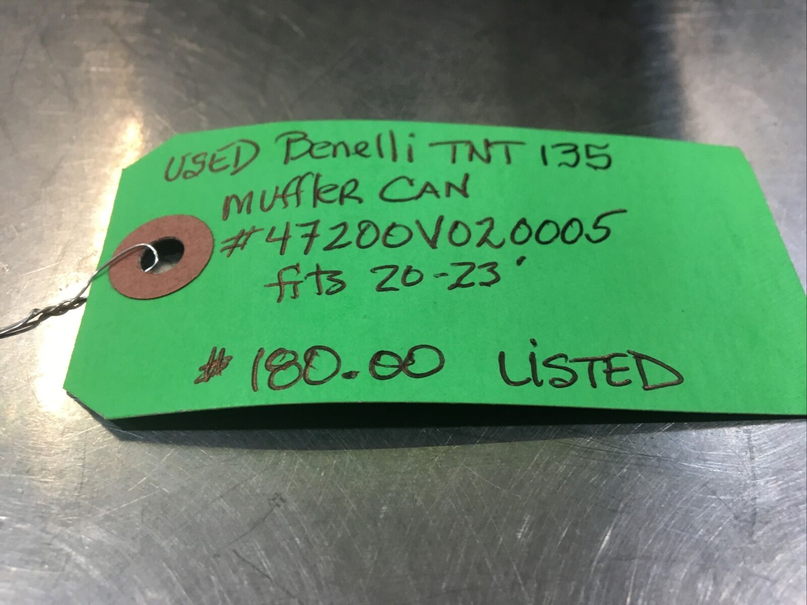 Benelli TNT 135 Muffler Can #47200V020005. Condition is used. Fits 20-23’ models buyer is responsible for fitment and applications