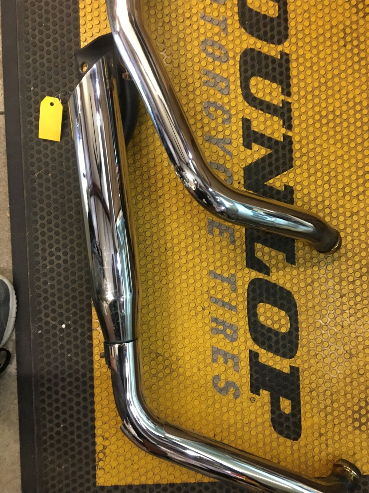 Exhaust system with RC mufflers for Harley Davidson. Condition is used. Has scratches and scuffs and discoloration fits Harley Davidson 07-09’ FXST models buyer is responsible for fitment and applications no returns