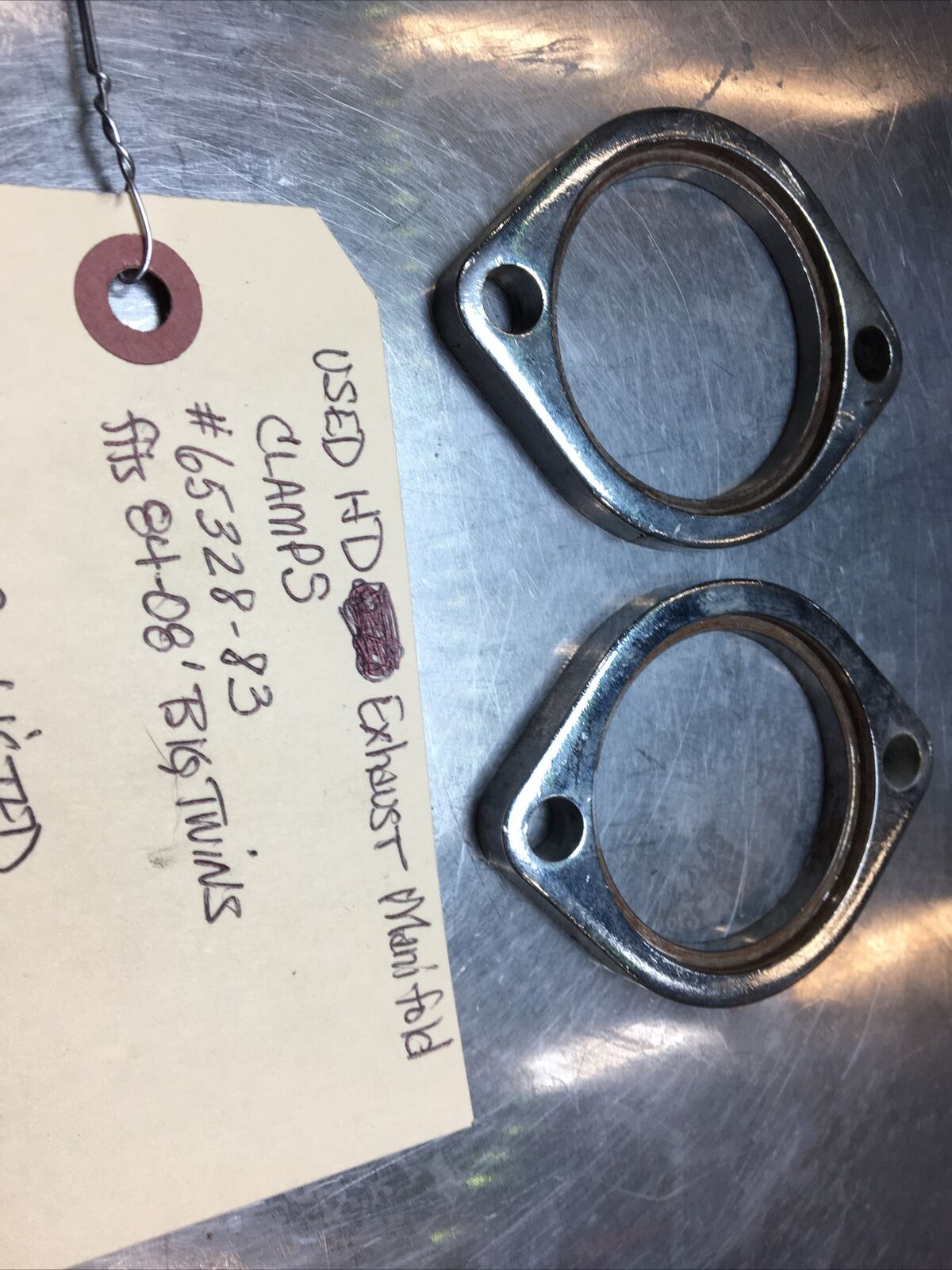 Harley Davidson Exhaust Manifold Clamps #65328-83. Condition is used. Fits Harley Davidson 84-08’ Big Twins buyer is responsible for fitment and applications