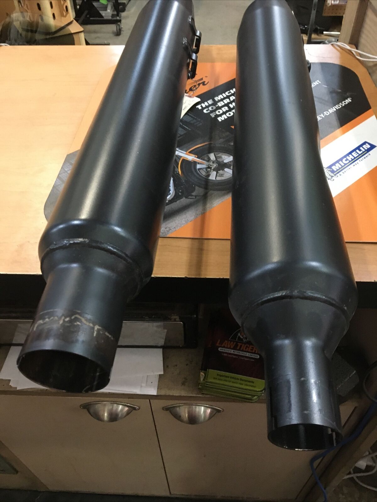 Harley Davidson OEM Black mufflers #64900765/64900766.