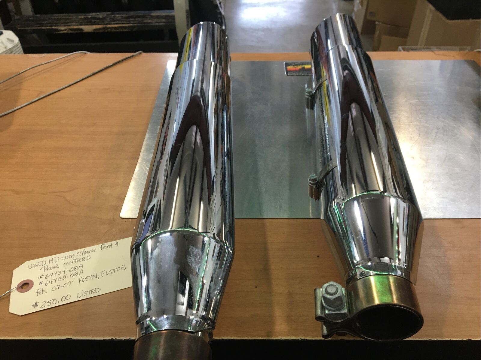 Harley Davidson oem Chrome Front & Rear Mufflers #64734-08A/64735-08A