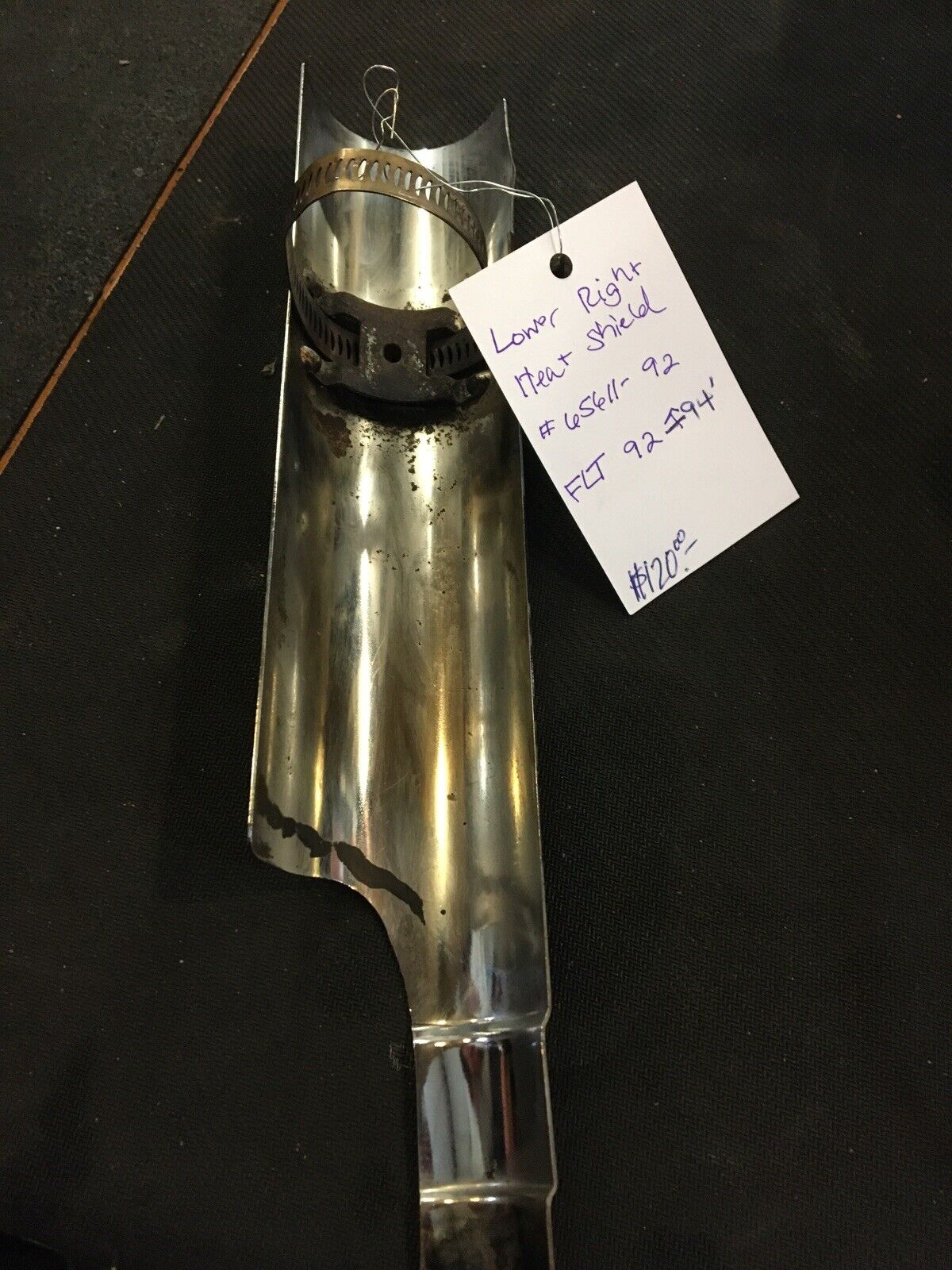 Harley Davidson OEM Lower Right Rear Heat Shield #65611-92. Condition is Used.obsolete item has a dent in it fits 92-94’ FLT models buyer is responsible for fitment and applications
