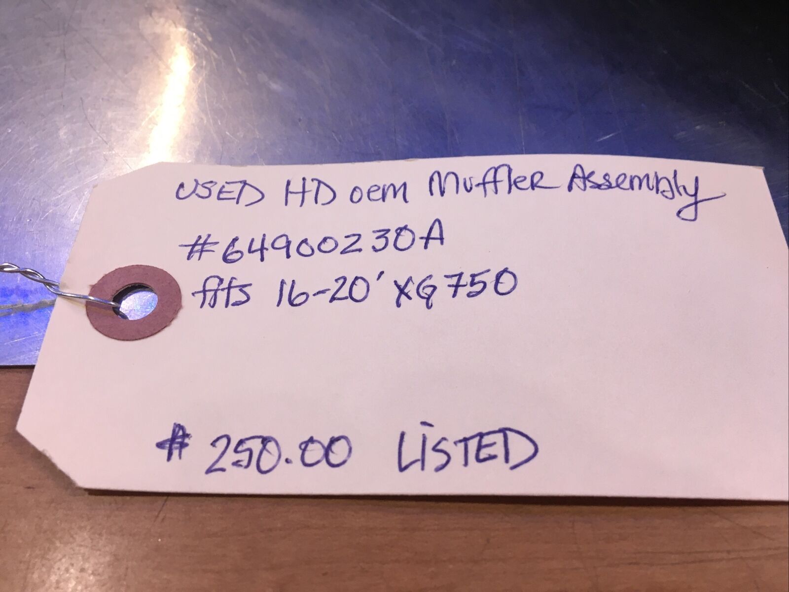 Harley Davidson oem Muffler Assembly #64900230A. Condition is used. Fits 16-20’ XG750 buyer is responsible for fitment and applications