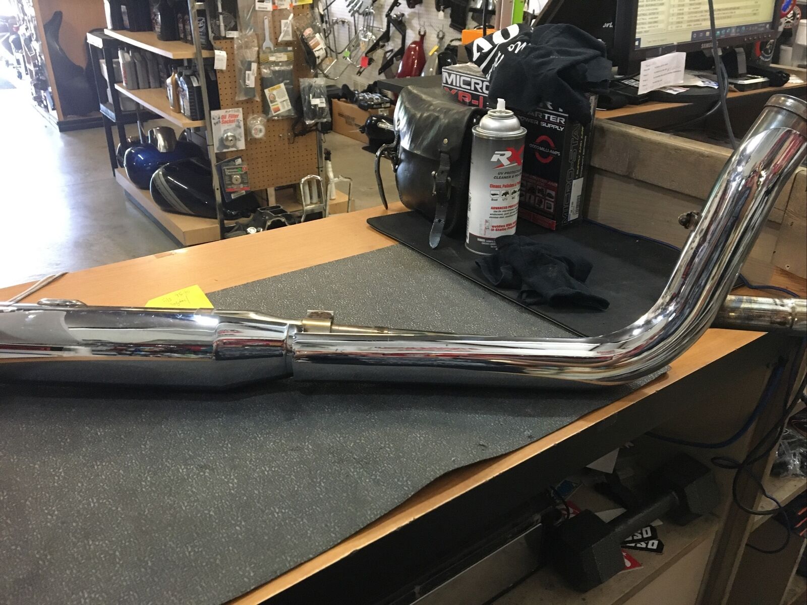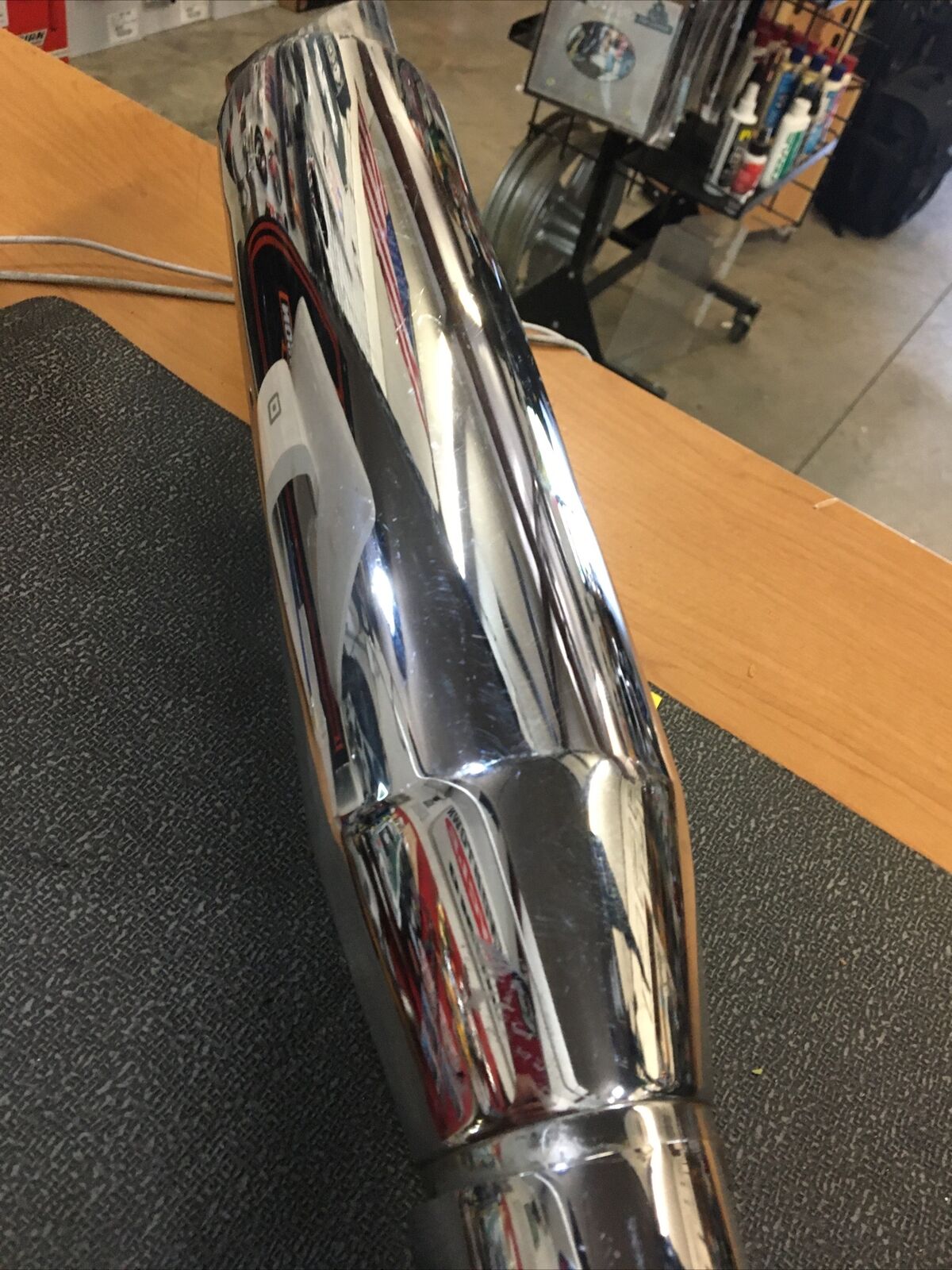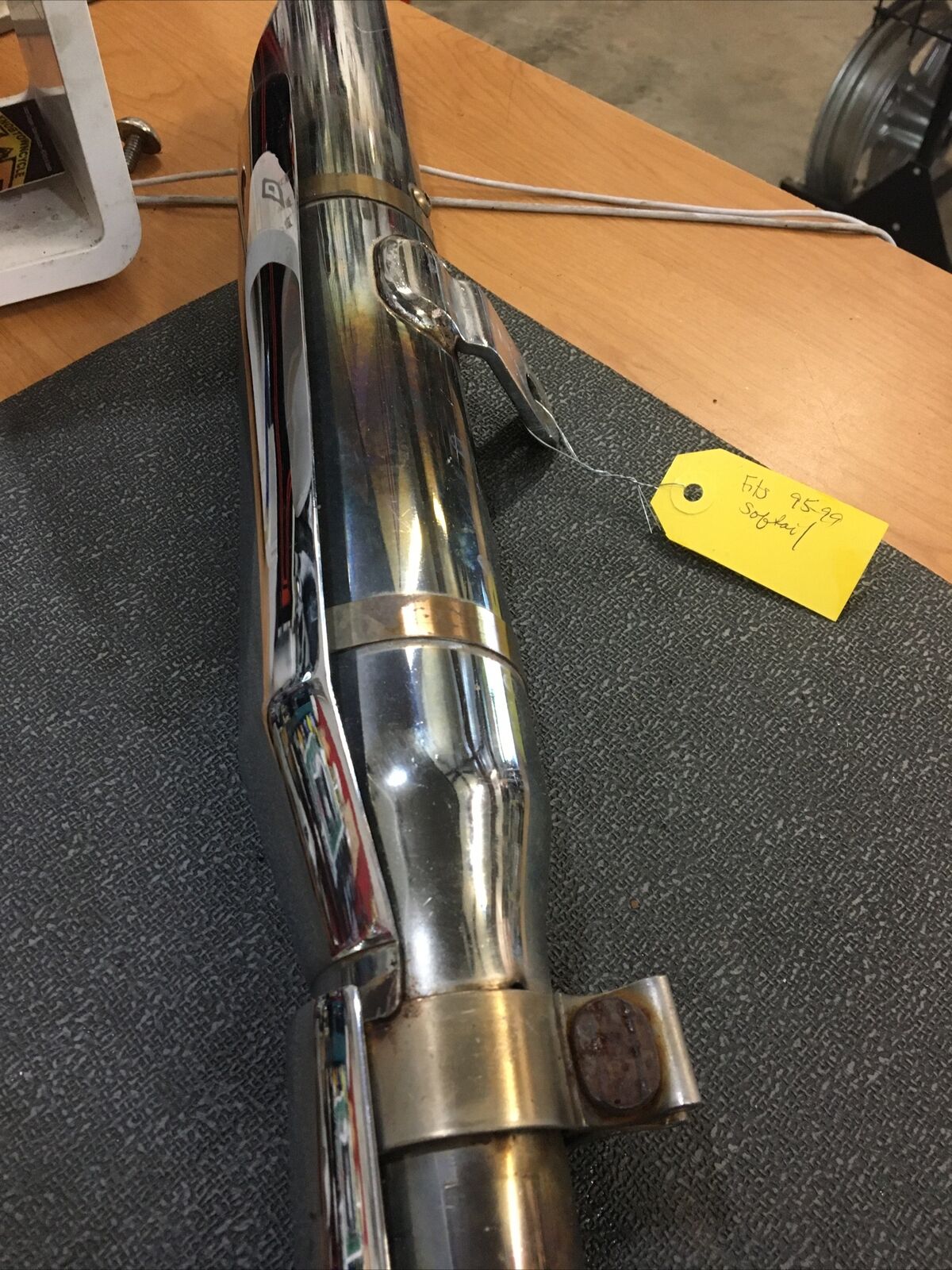 95-99’ Softails has scratches and scuffs and chrome peeling on bottom of heat shield buyer is responsible for fitment and applications no returns