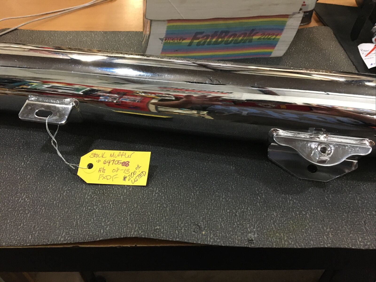Harley Davidson OEM rear muffler #64705-08. Condition is used. Has scratches and scuffs. Fits 08-13’ FXDF buyer is responsible for fitment and applications no returns