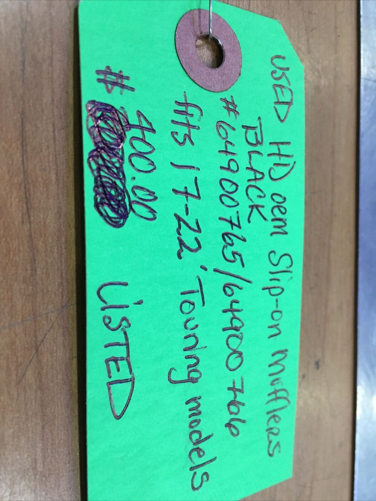 Harley Davidson oem Slip-on Mufflers Black #64900765/64900766. Condition is used. Fits 17-22’ Touring models buyer is responsible for fitment and applications