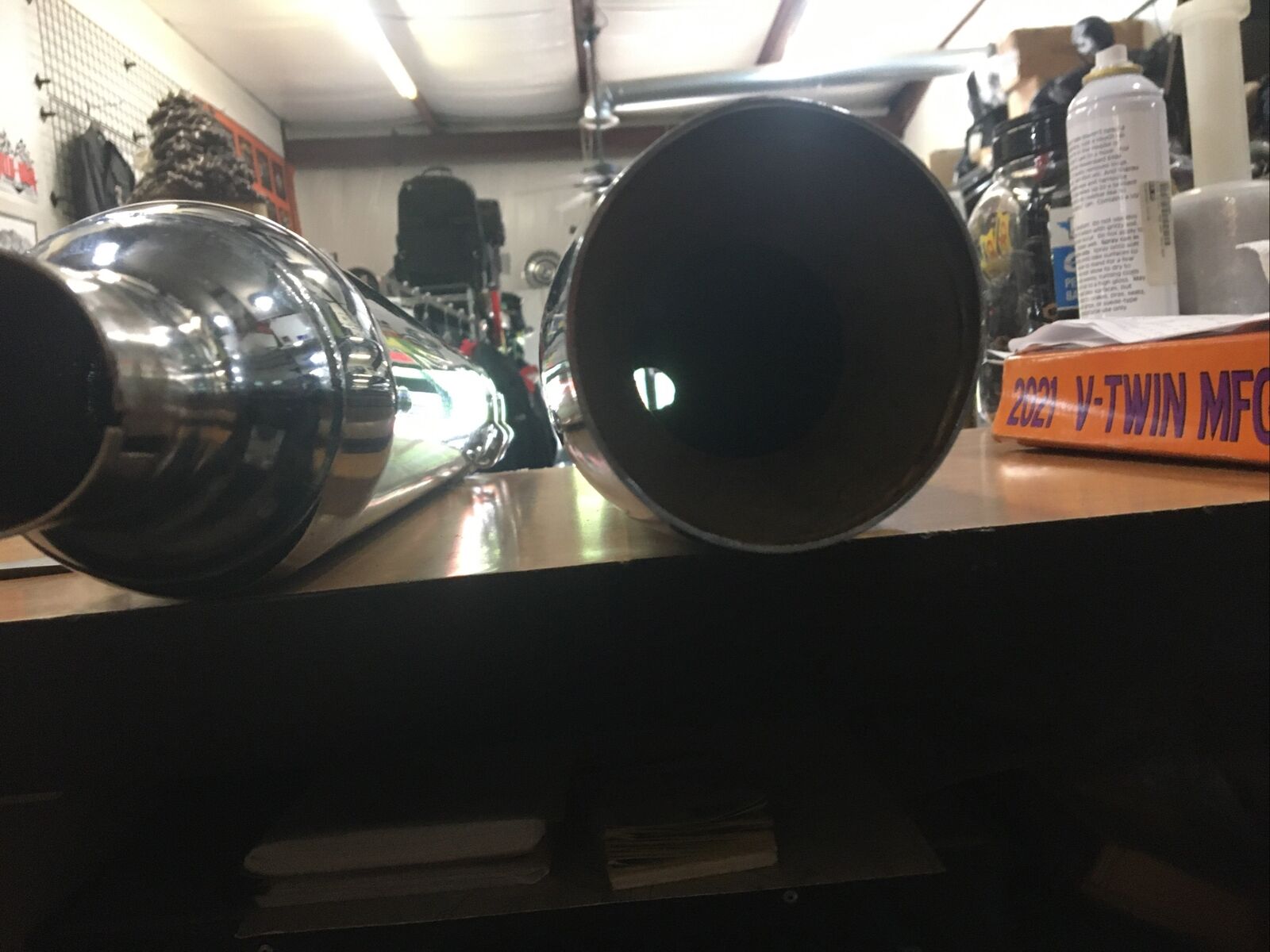 Despite being used, these mufflers are in good condition, as seen in the pictures provided. While they may have a couple of dents, the baffles have been cut out to give your bike a more aggressive sound and improved performance. This modification allows for better airflow, resulting in a more powerful and efficient ride.
