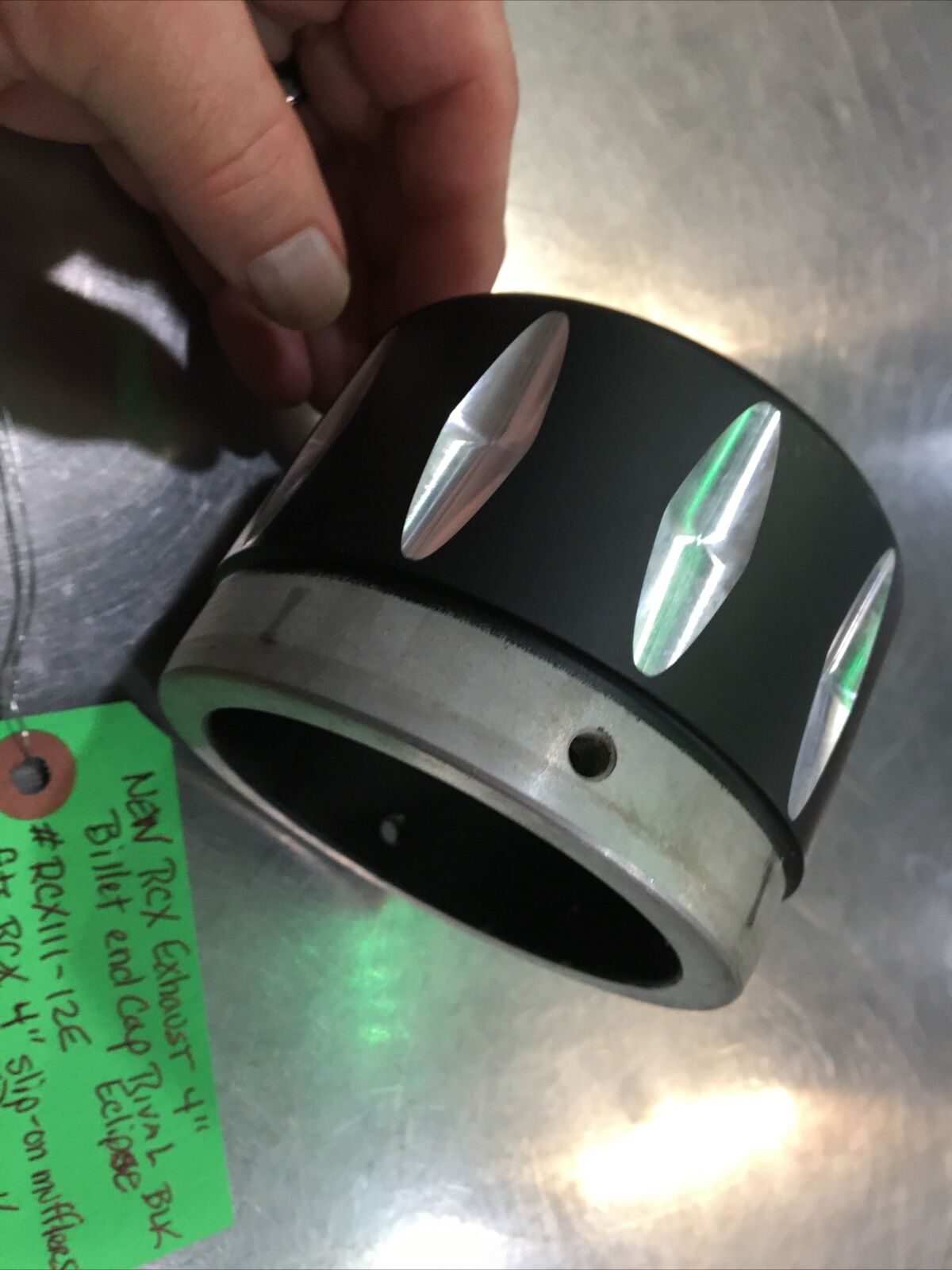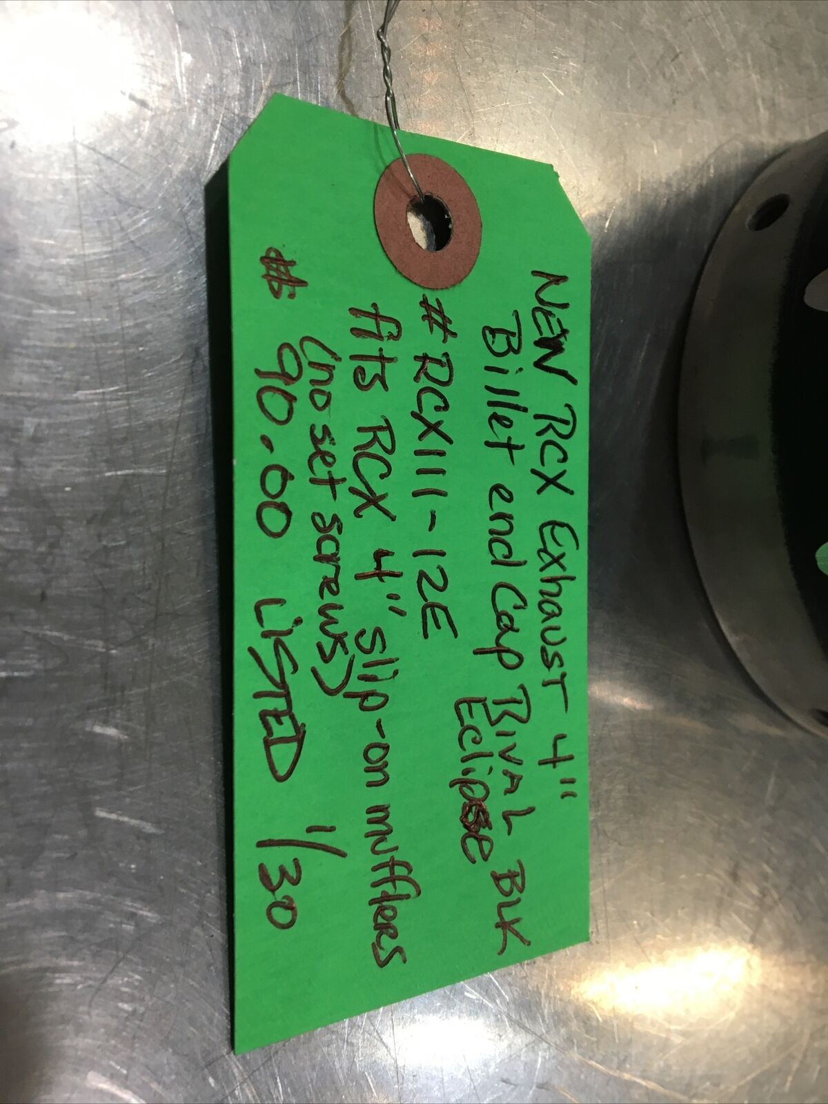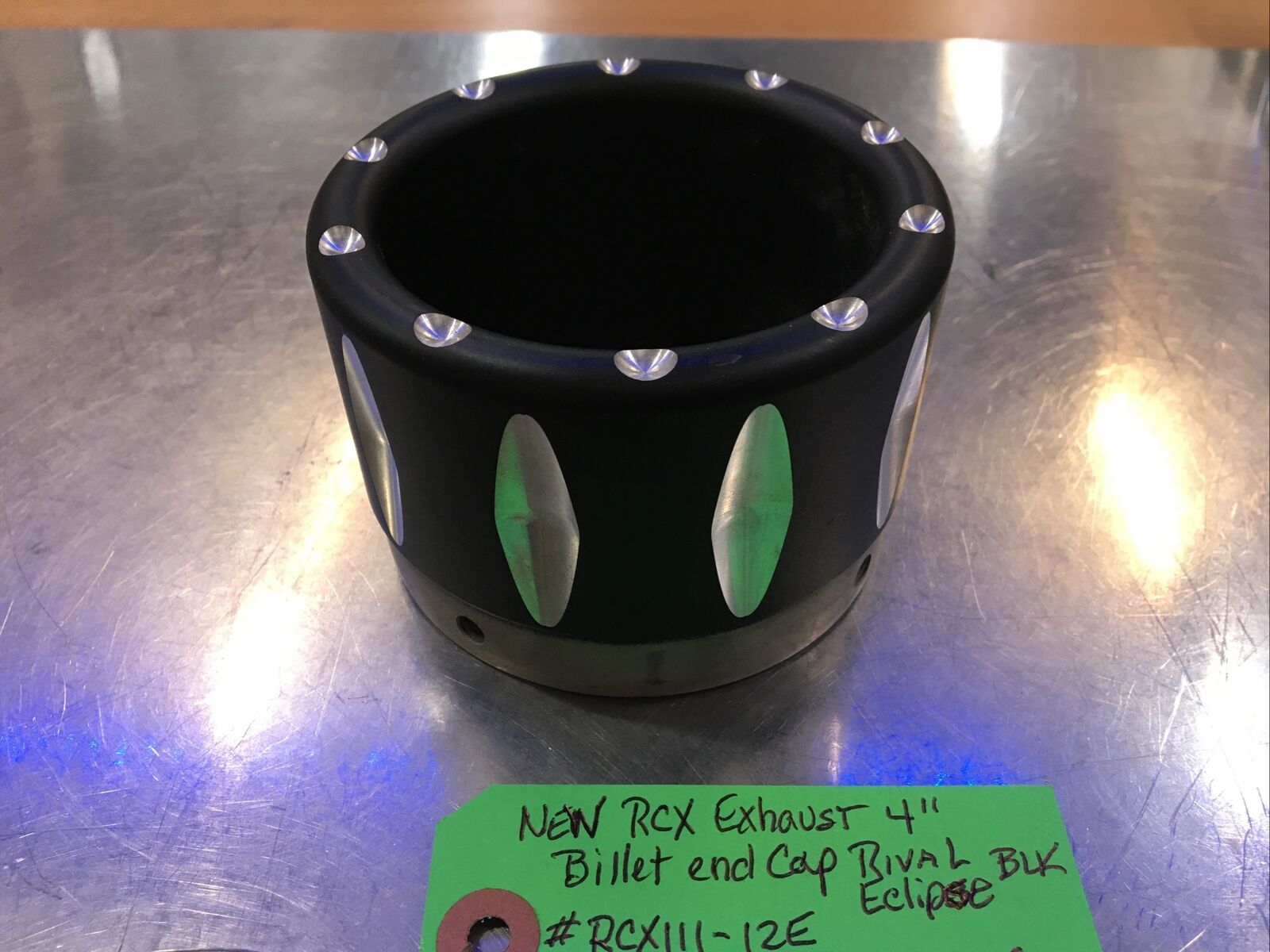 RCX Exhaust 4” Billet End Cap Rival Eclipse Black #RCX111-12E. Condition is new. No set screws. Fits RCX 4” slip-on muffler buyer is responsible for fitment and applications