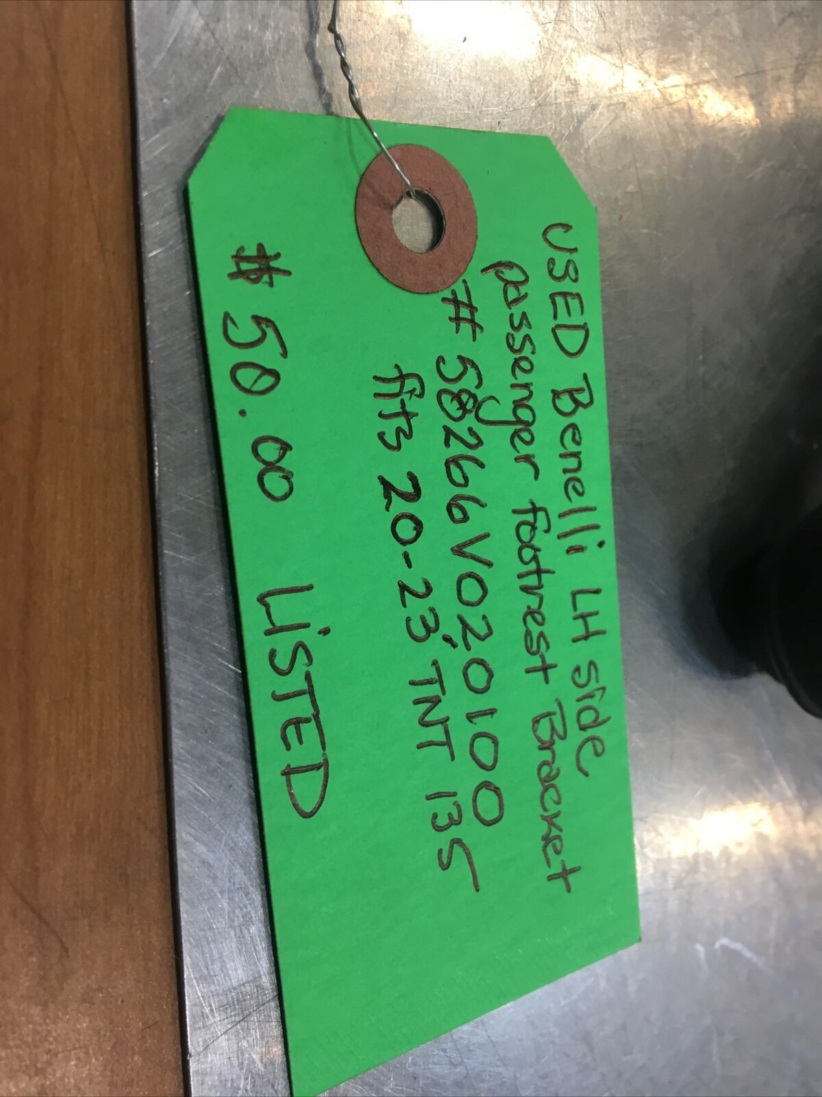 Benelli TNT 135 LH Side Passenger Footrest Bracket #58266V020100. Condition is used. Fits 20-23’ models buyer is responsible for fitment and applications