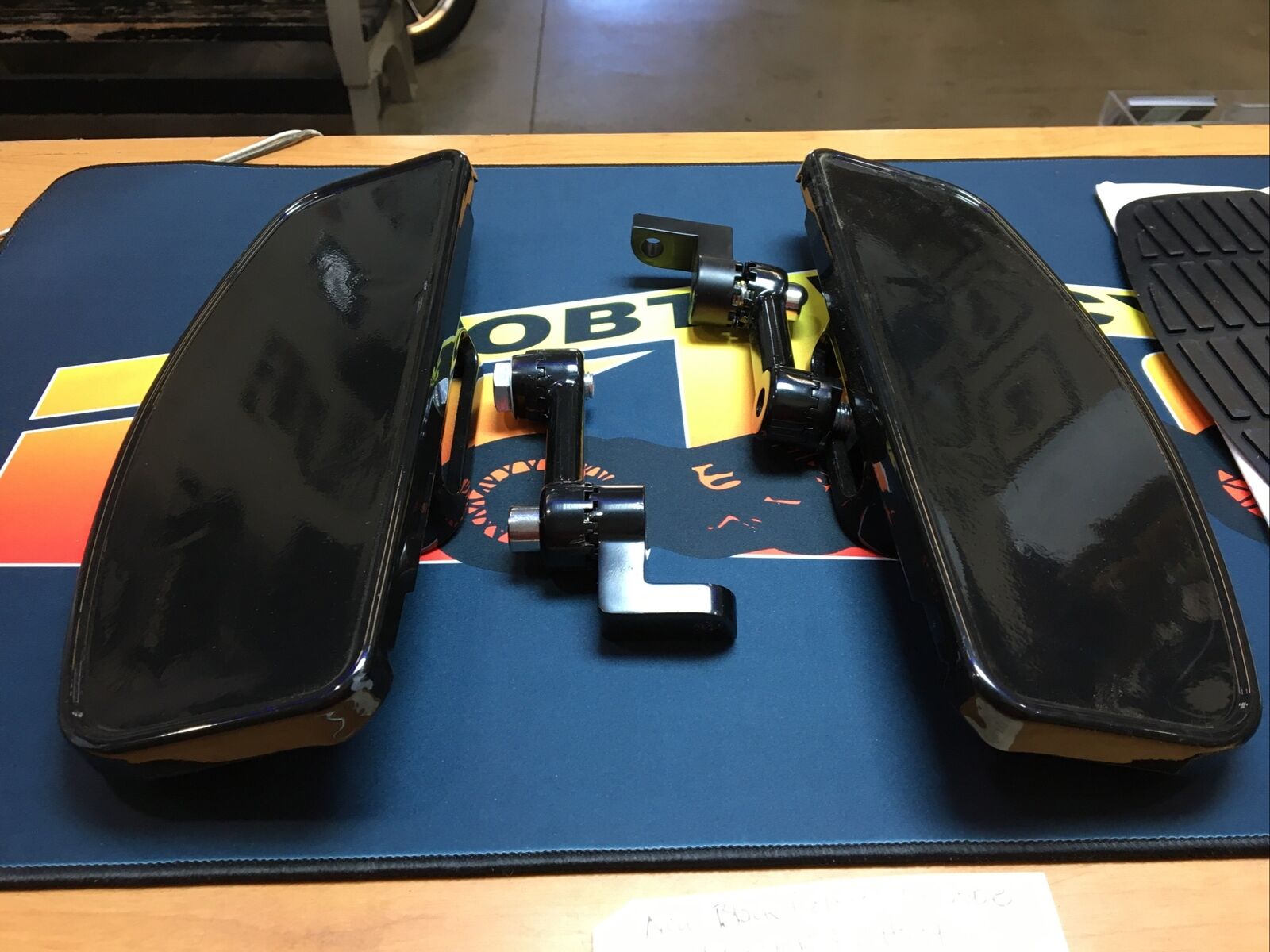 Black Bolt-on Adjustable Floorboards For Harley. Condition is used.Fits Harley Davidson models with male mount Footpegs does not fit with offset clevis.buyer is responsible for fitment and applications