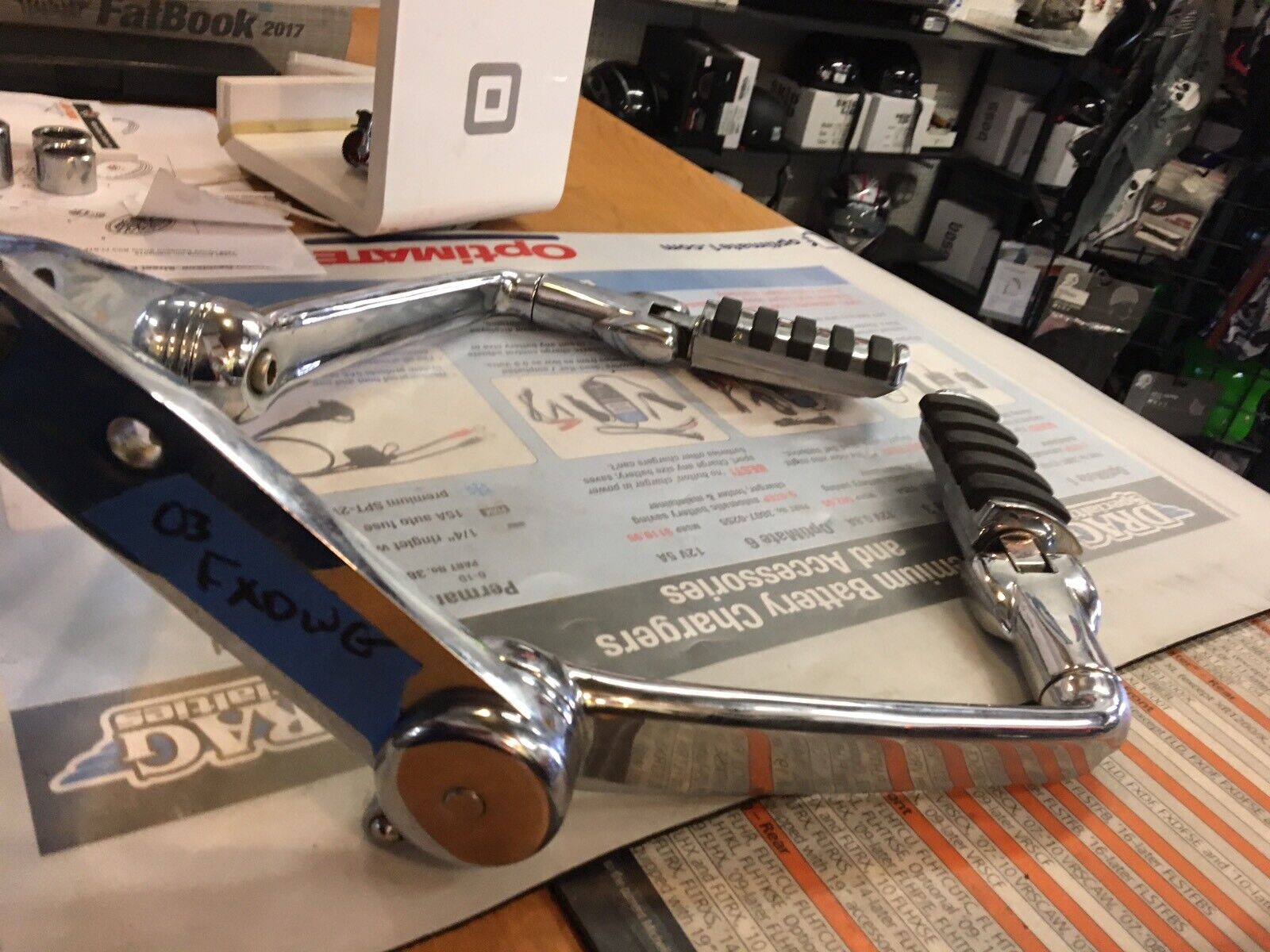 Used take off CAS4 cruising bars and HD airfoil footpegs has some scratches and road rash fits 93-04’ FXDWG with stock forward controls no mounting hardware
