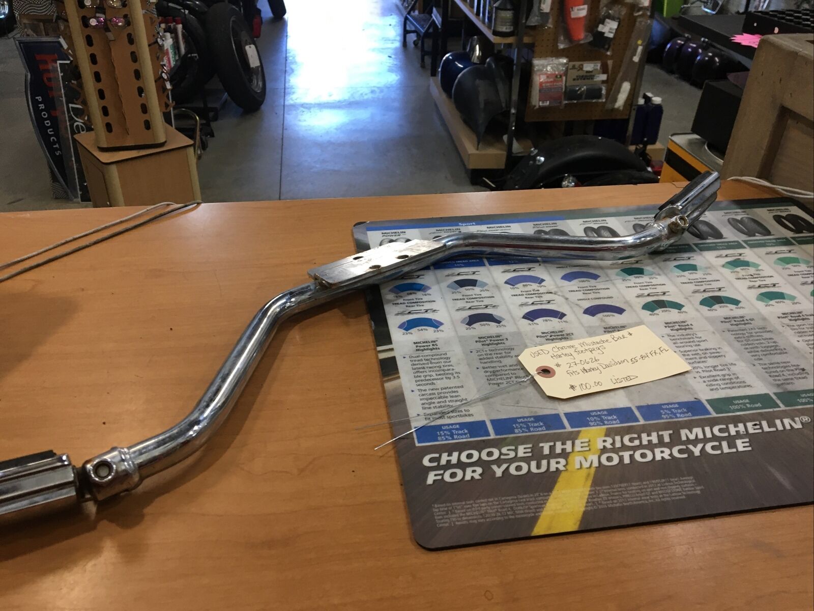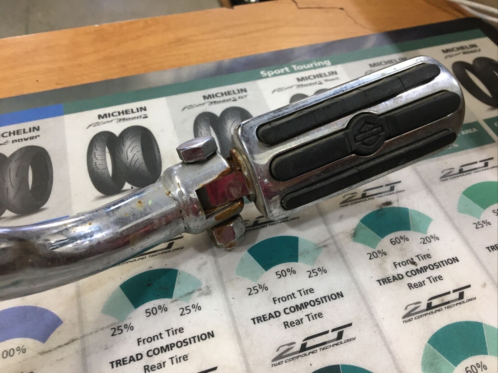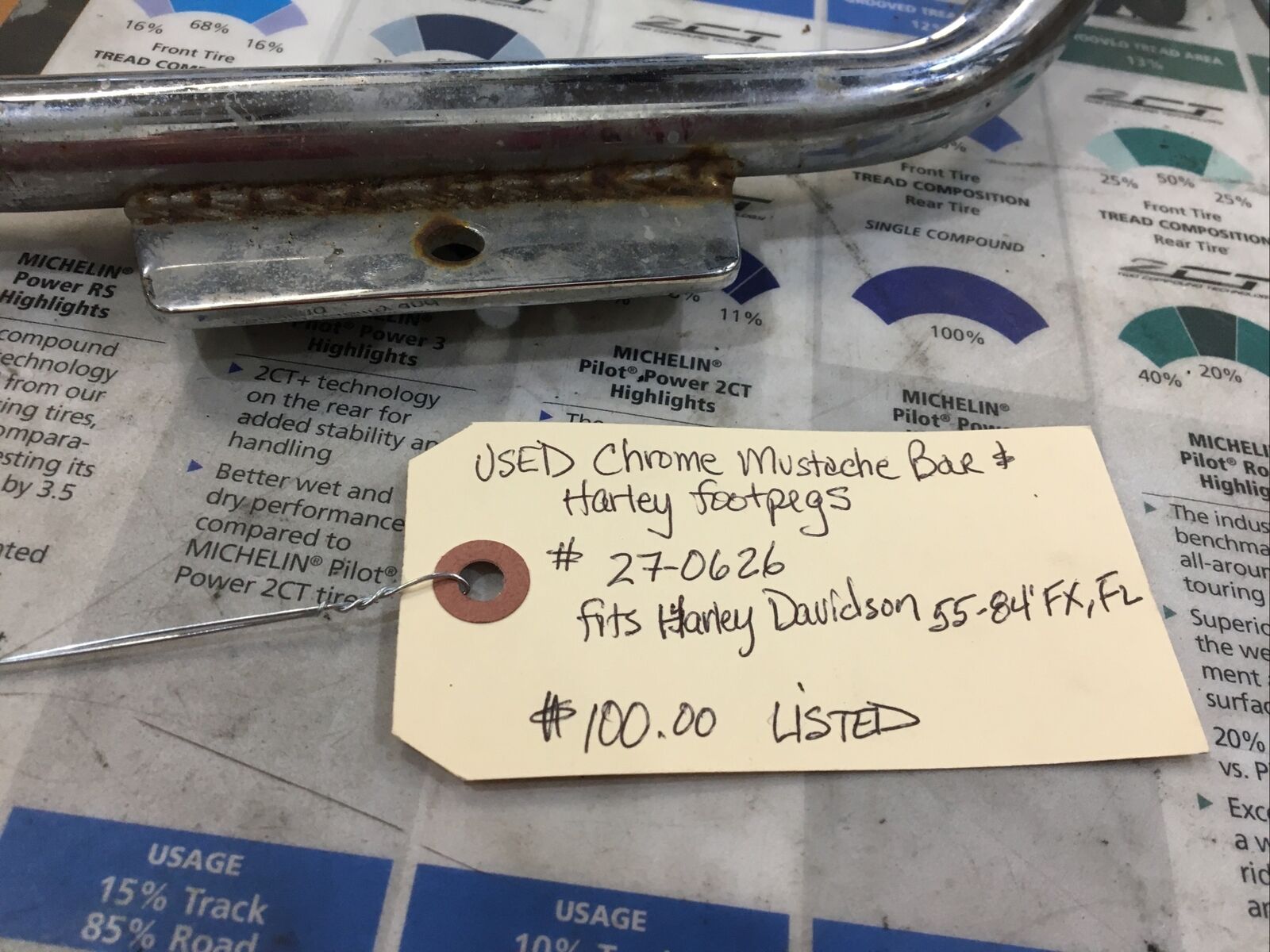 Chrome Mustache Bar and Harley Footpegs #27-0626. Condition is used. Fits Harley Davidson 55-84’ FX, FL models buyer is responsible for fitment and applications