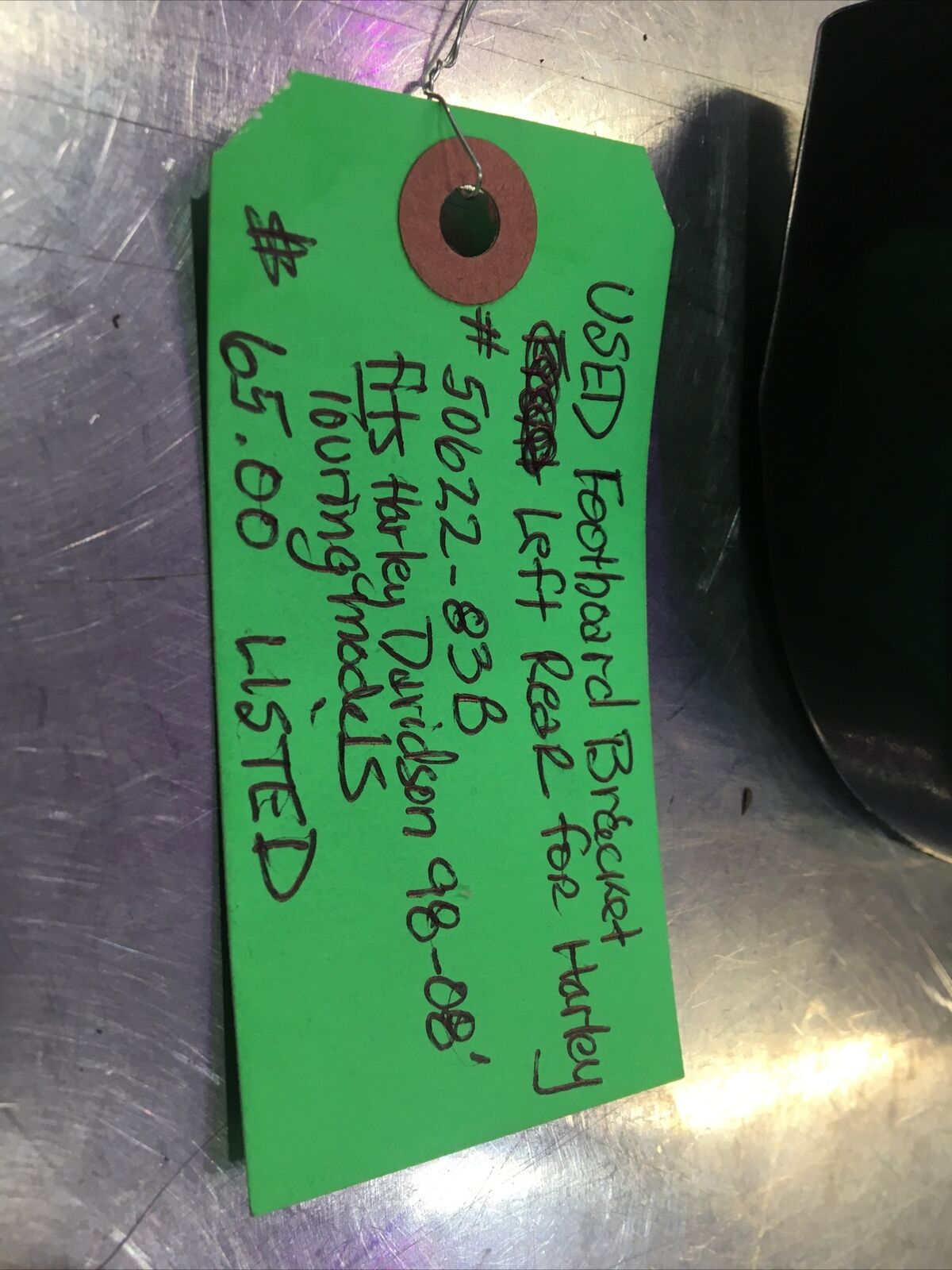 Footboard Bracket Left Rear For Harley #50622-83B. Condition is used. Fits Harley Davidson 98-08’ Touring models buyer is responsible for fitment and applications