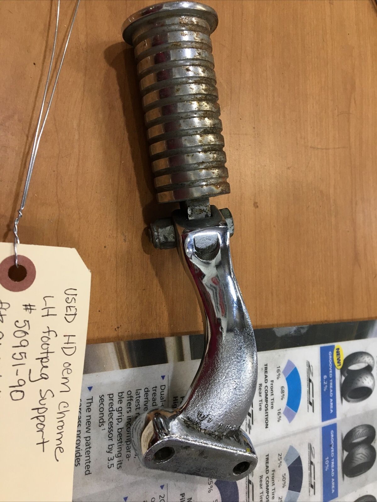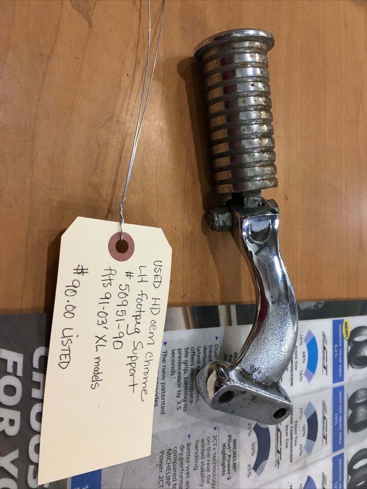 Harley Davidson oem Chrome LH Footpeg Support #50951-90. Condition is used. Fits 91-03’ XL models buyer is responsible for fitment and applications