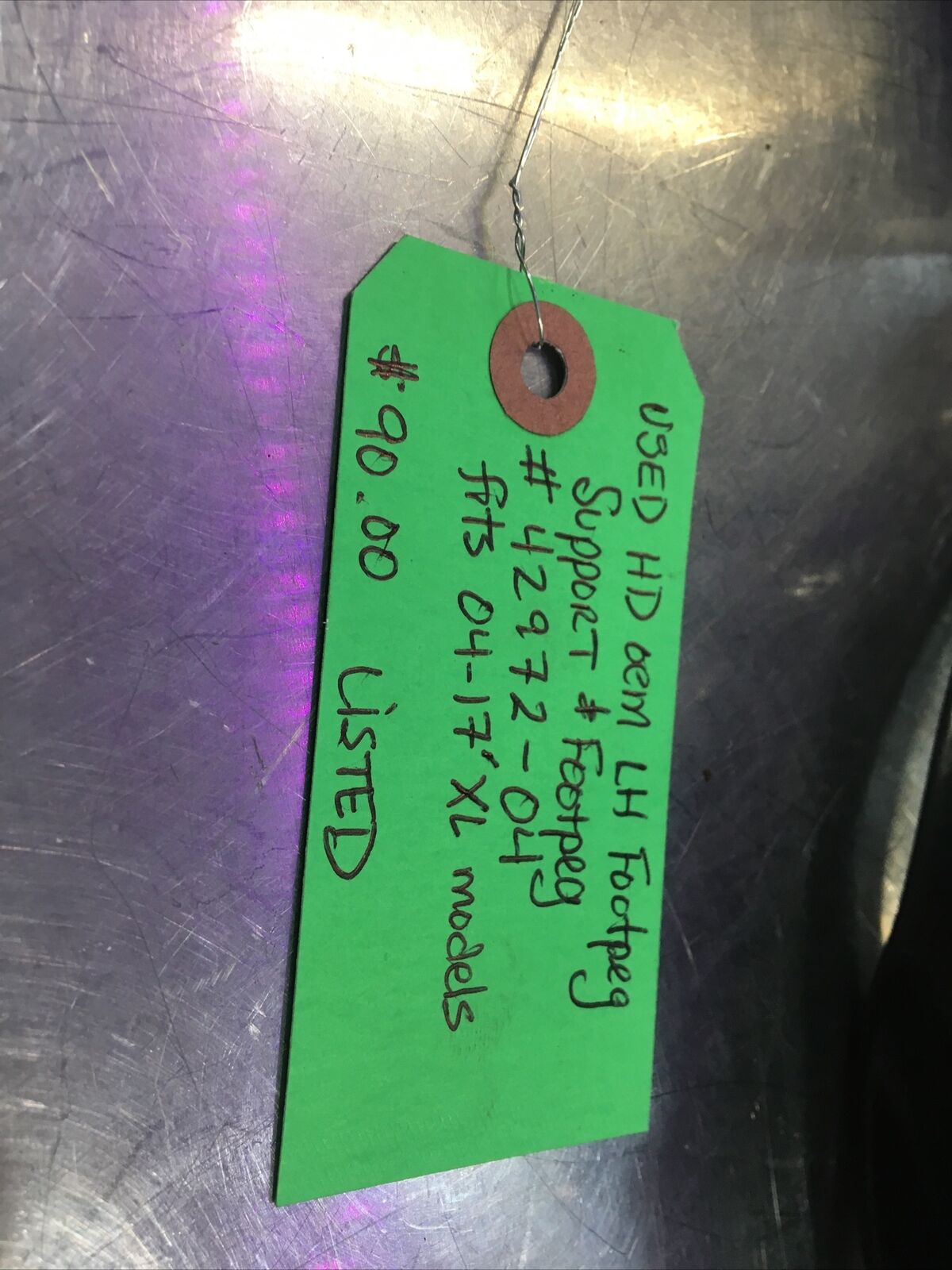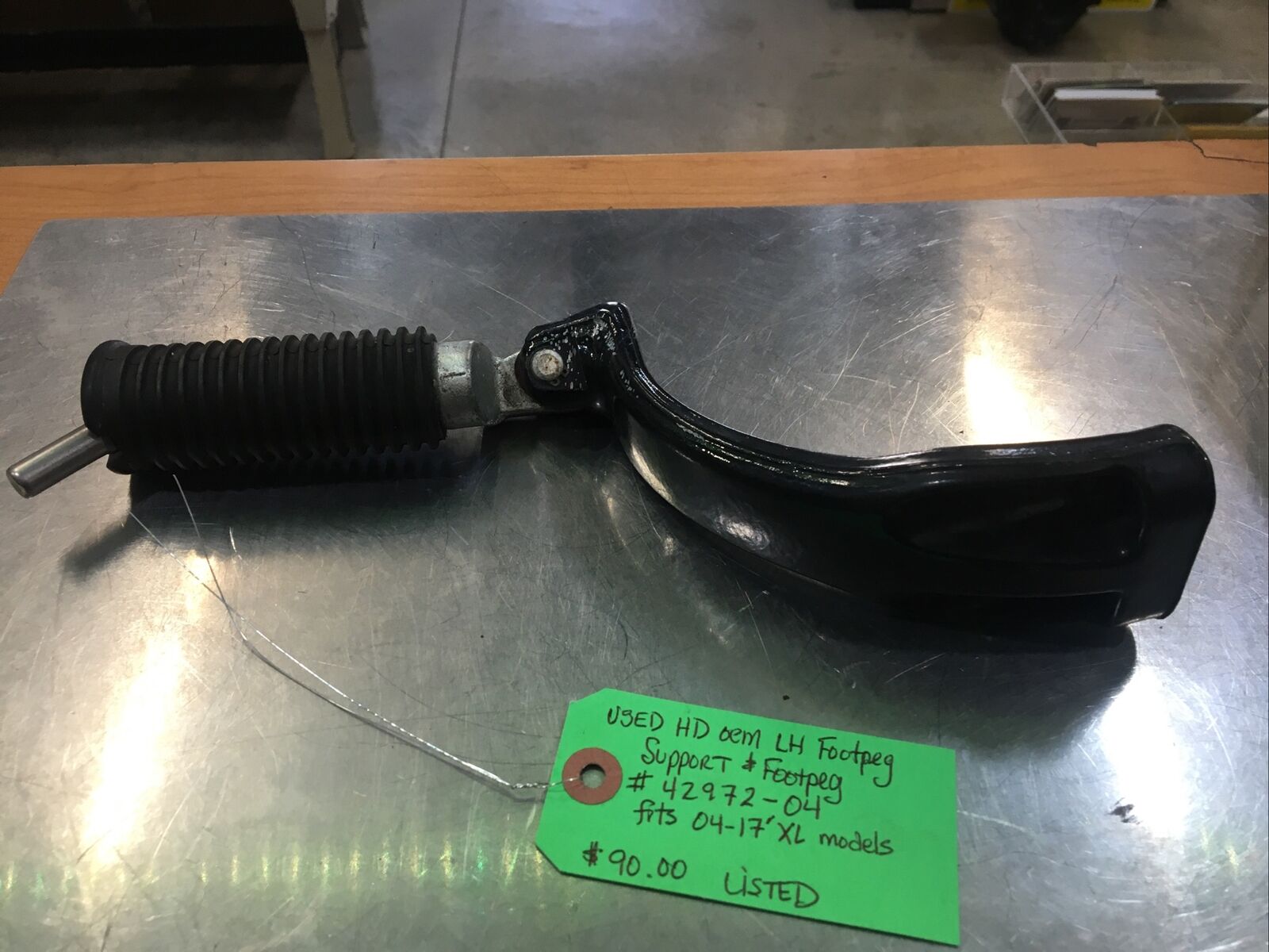 Harley Davidson oem LH Footpeg Support & Footpeg #42972-04. Condition is used. Fits 04-17’ XL models buyer is responsible for fitment and applications
