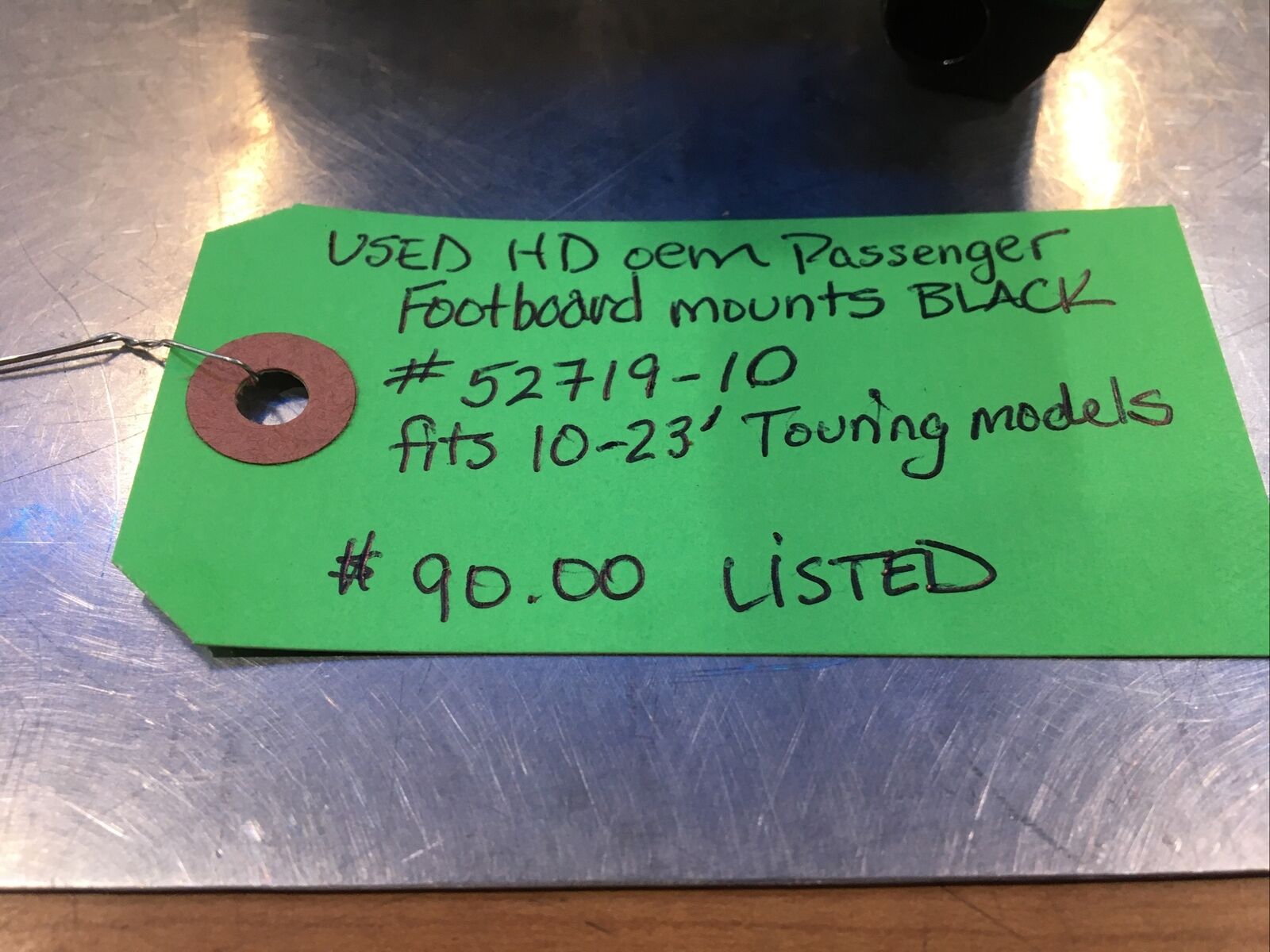 Harley Davidson oem Passenger Footboard Mounts Black #52719-10. Condition is used. Fits 10-23’ Touring models buyer is responsible for fitment and applications