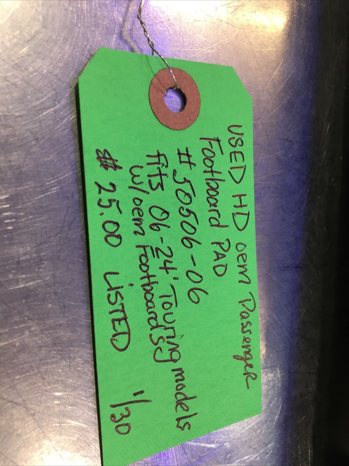 Harley Davidson oem Passenger Footboard Pad #50506-06. Condition is used. Fits 06-24’ Touring models buyer is responsible for fitment and applications