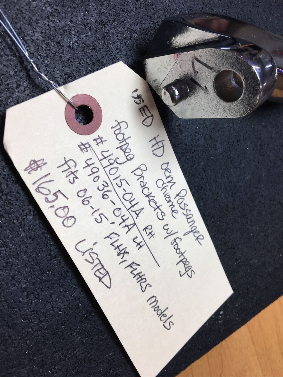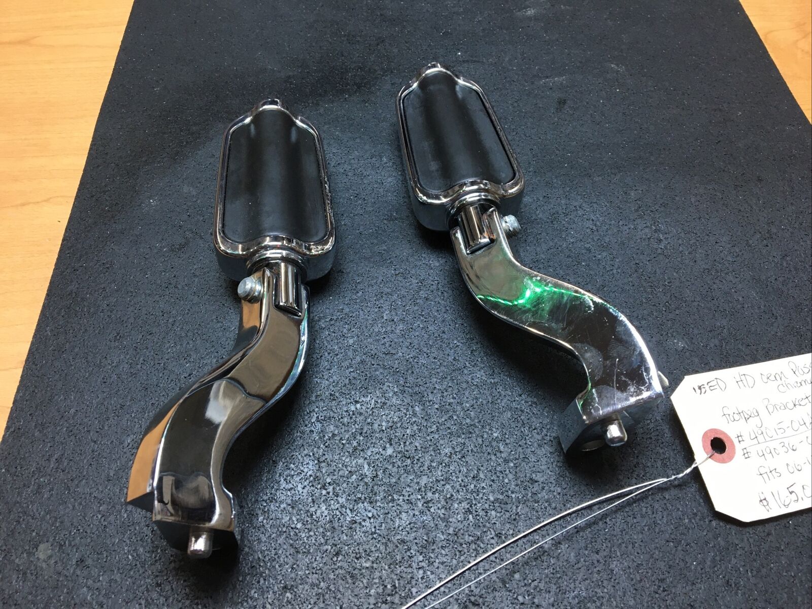 Harley Davidson oem Chrome Passenger Footpeg Brackets with Footpegs #49015-04A/49036-04A. Fits 06-15’ FLHX, FLHRS models buyer is responsible for fitment and applications