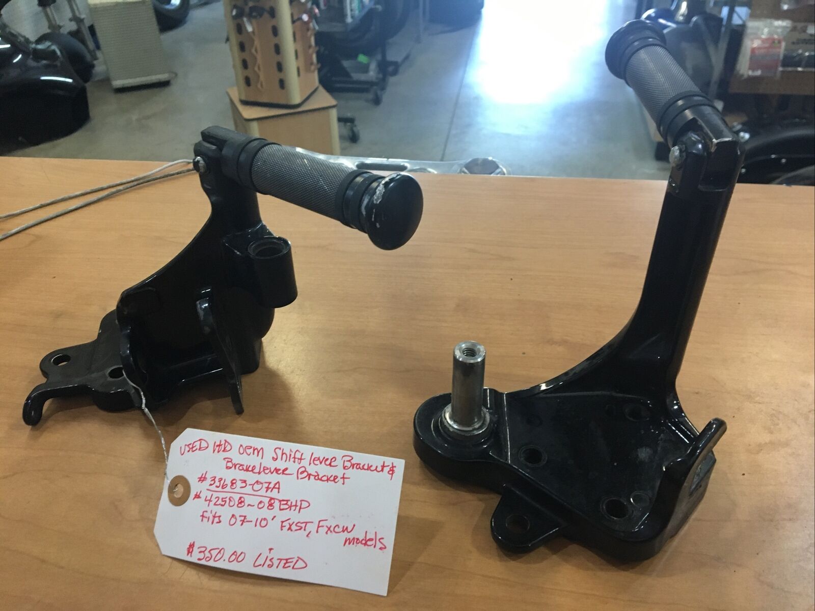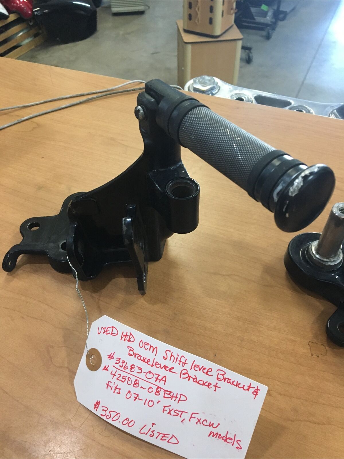 Harley Davidson Oem Shift Lever Bracket And Brake Lever Bracket #33683-07A. Condition is used. Fits 07-10’ FXST, FXSTC, FXCW models buyer is responsible for fitment and applications