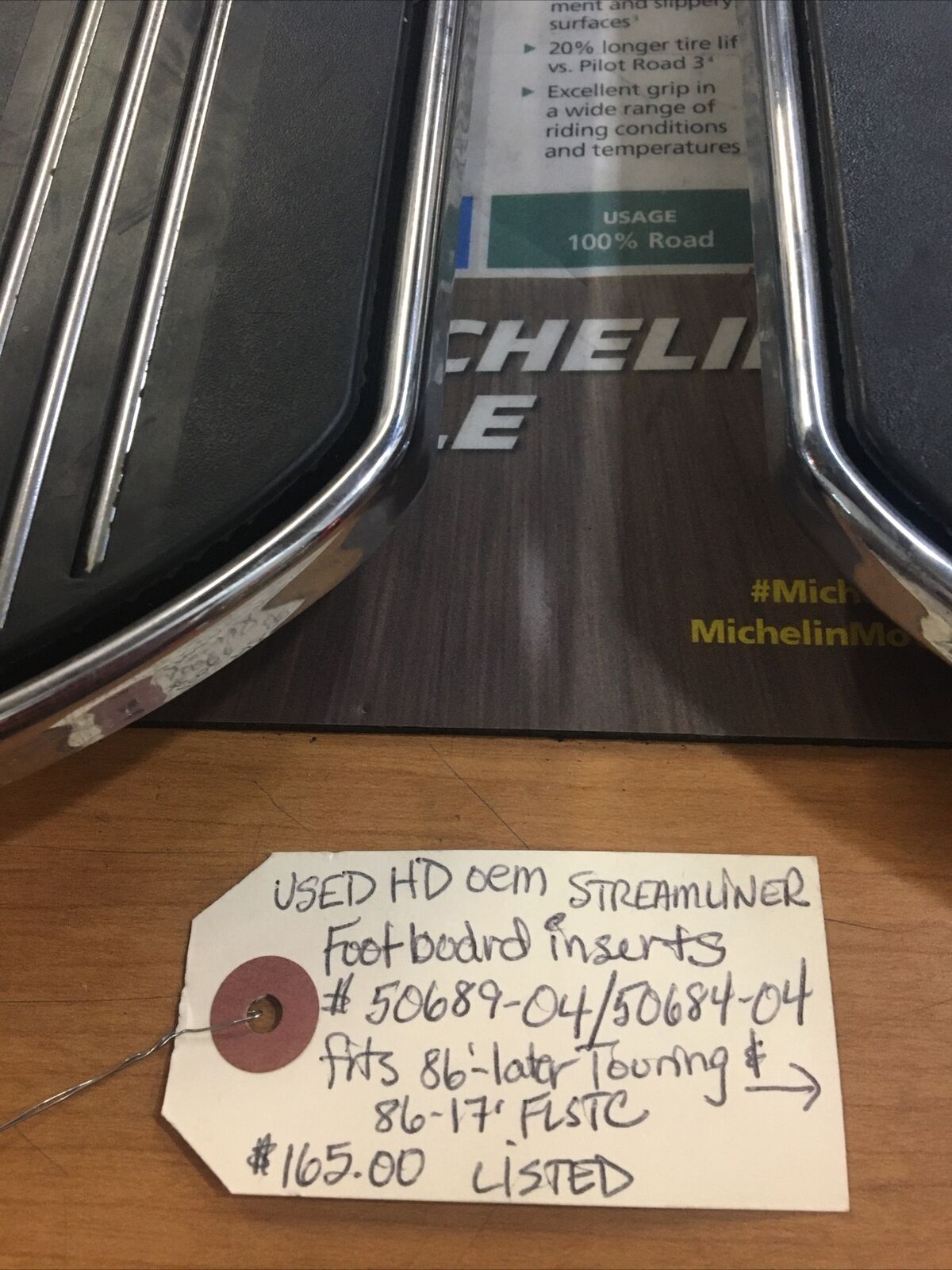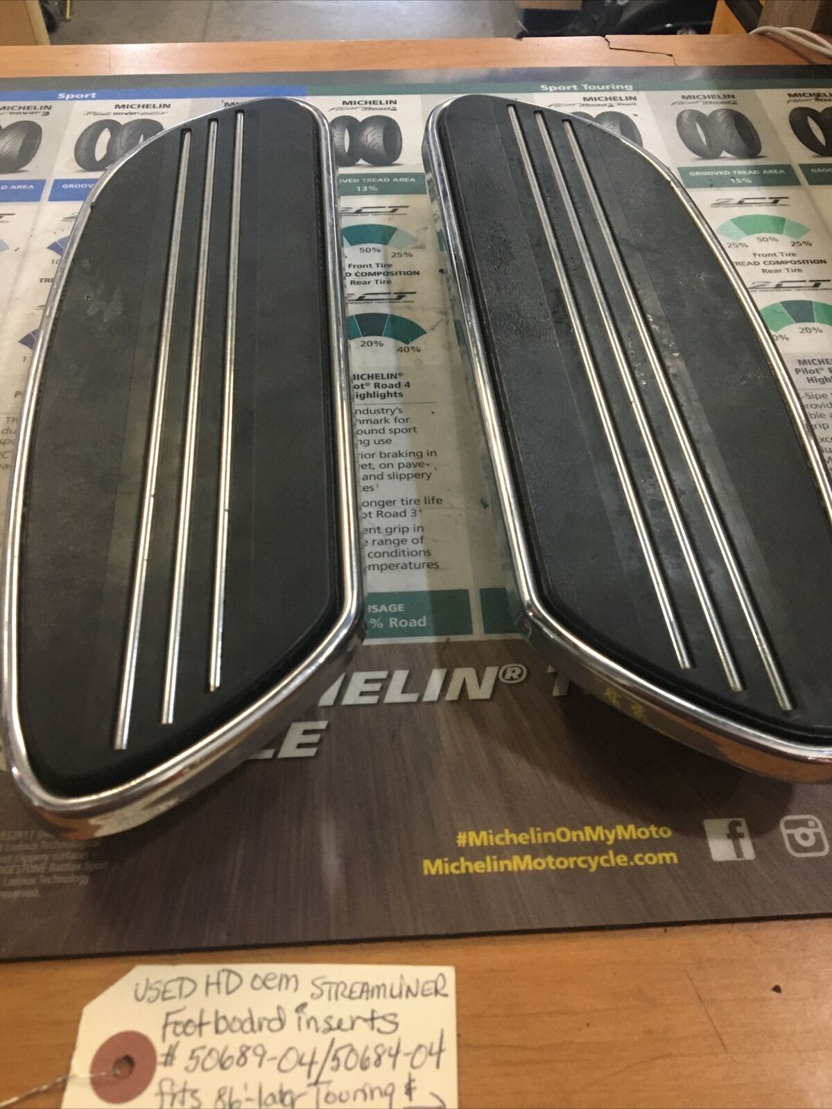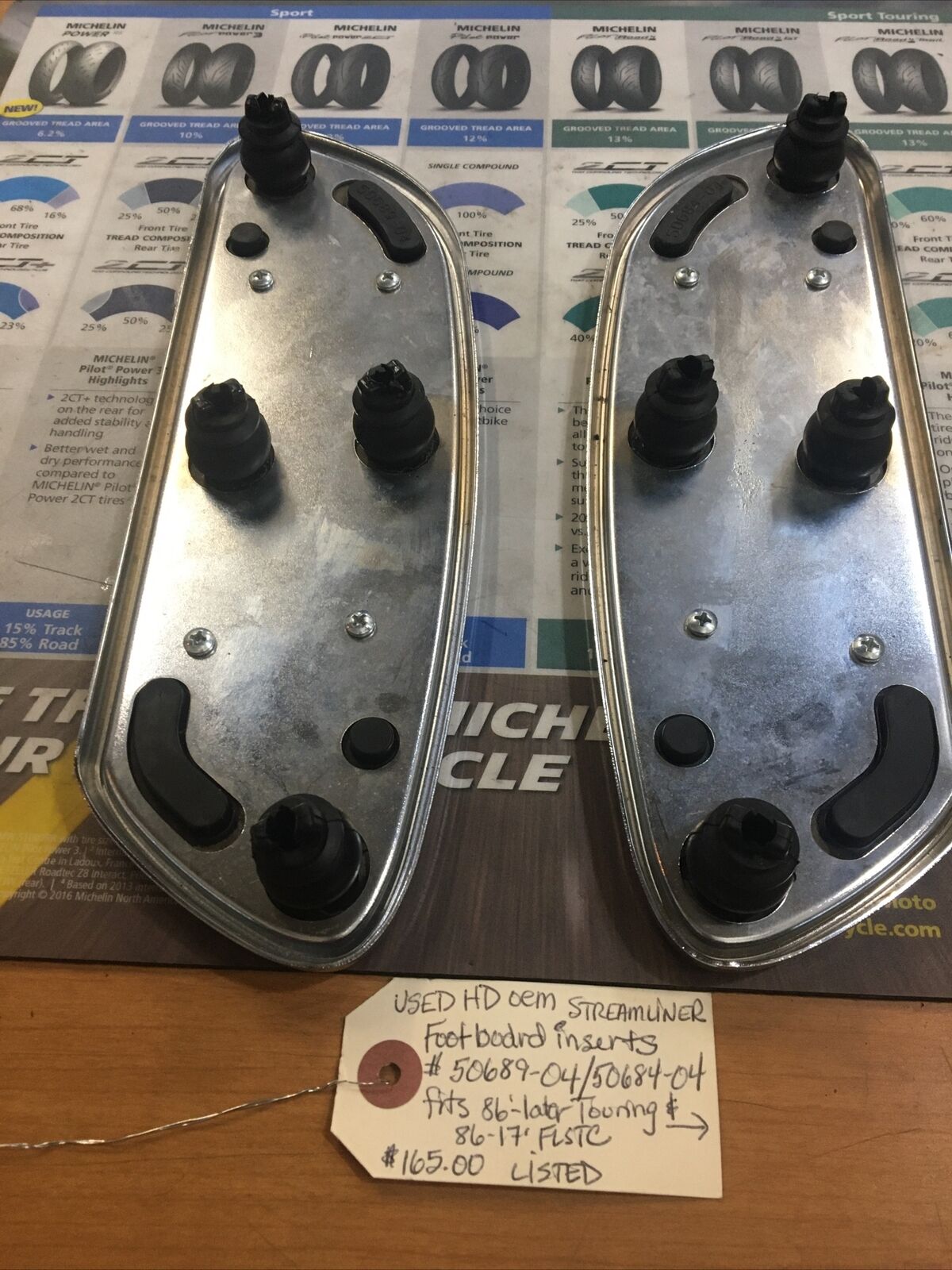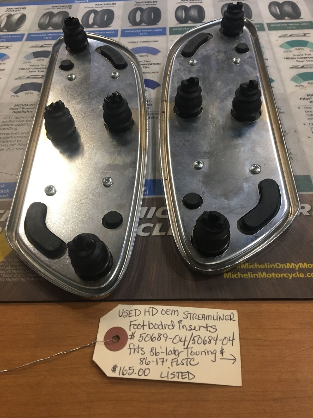 Harley Davidson oem Streamliner footboard inserts #50689-04/50684-04. Condition is used. Fits 86’-later Touring and 86-17’ FLSTC models except FLHTCU, FLHTKL buyer is responsible for fitment and applications