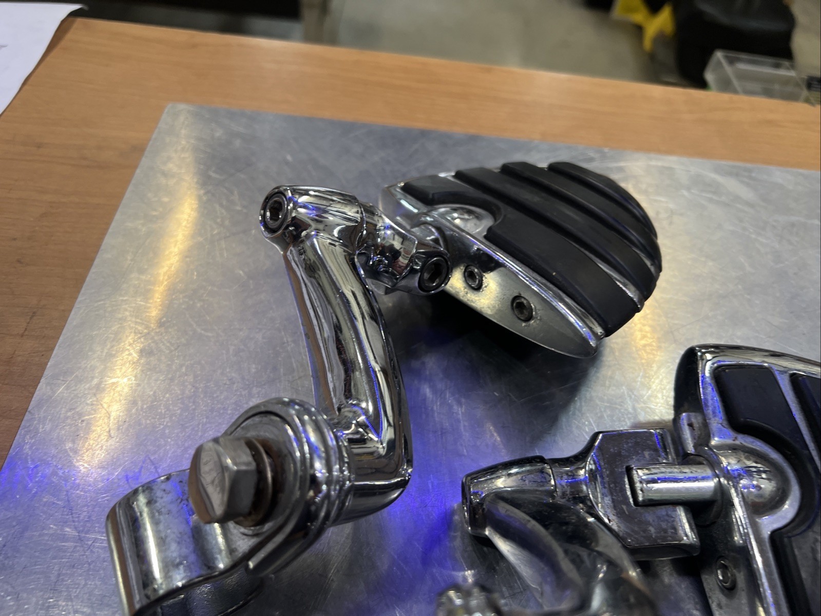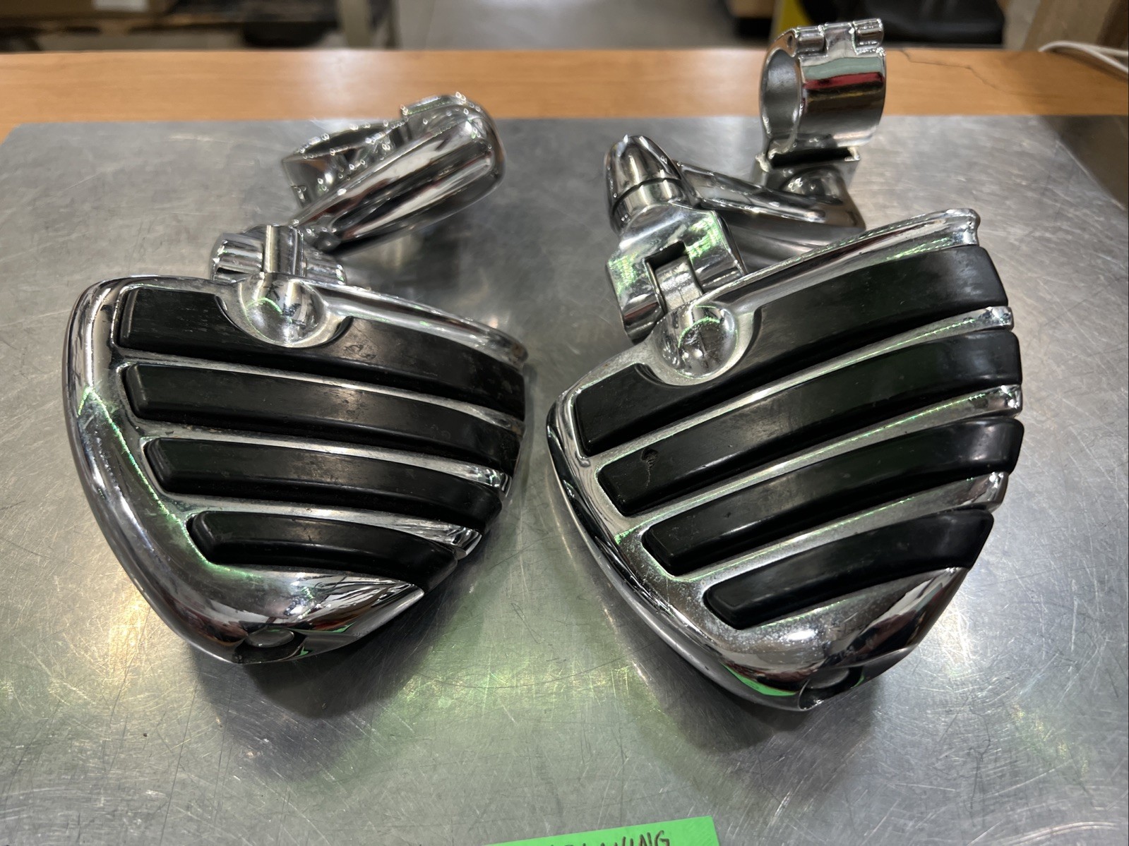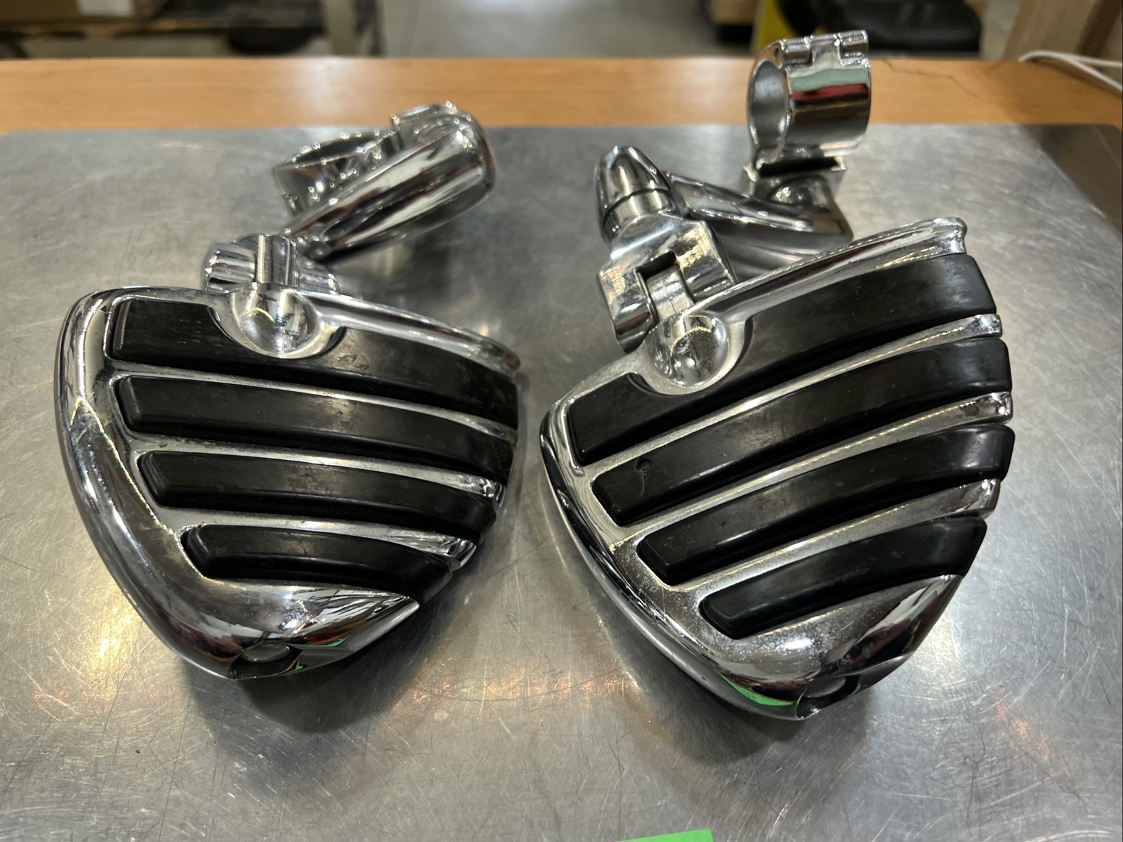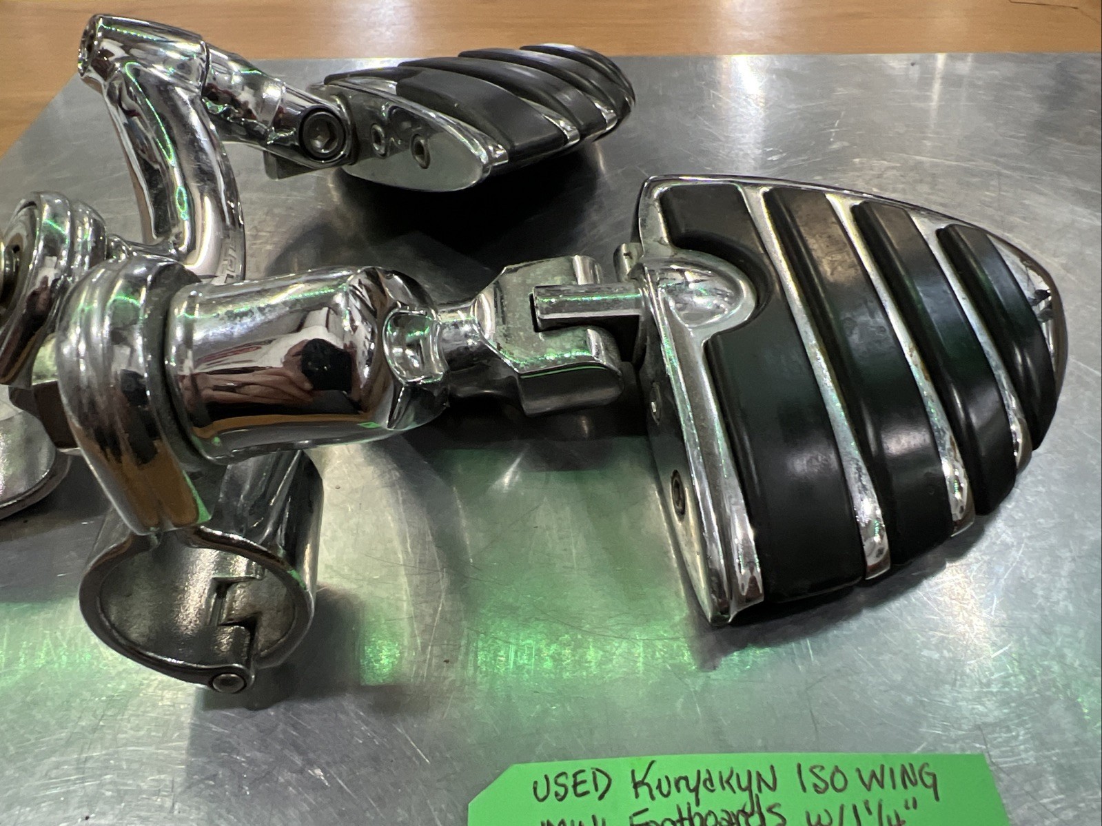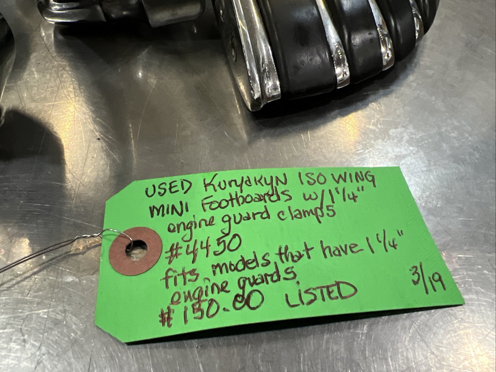Kuryakyn ISO Wing Mini Footboards w/ 1-1/4” engine guard clamps #4450. Condition is used. Fits models that have 1-1/4” engine guard buyer is responsible for fitment and applications