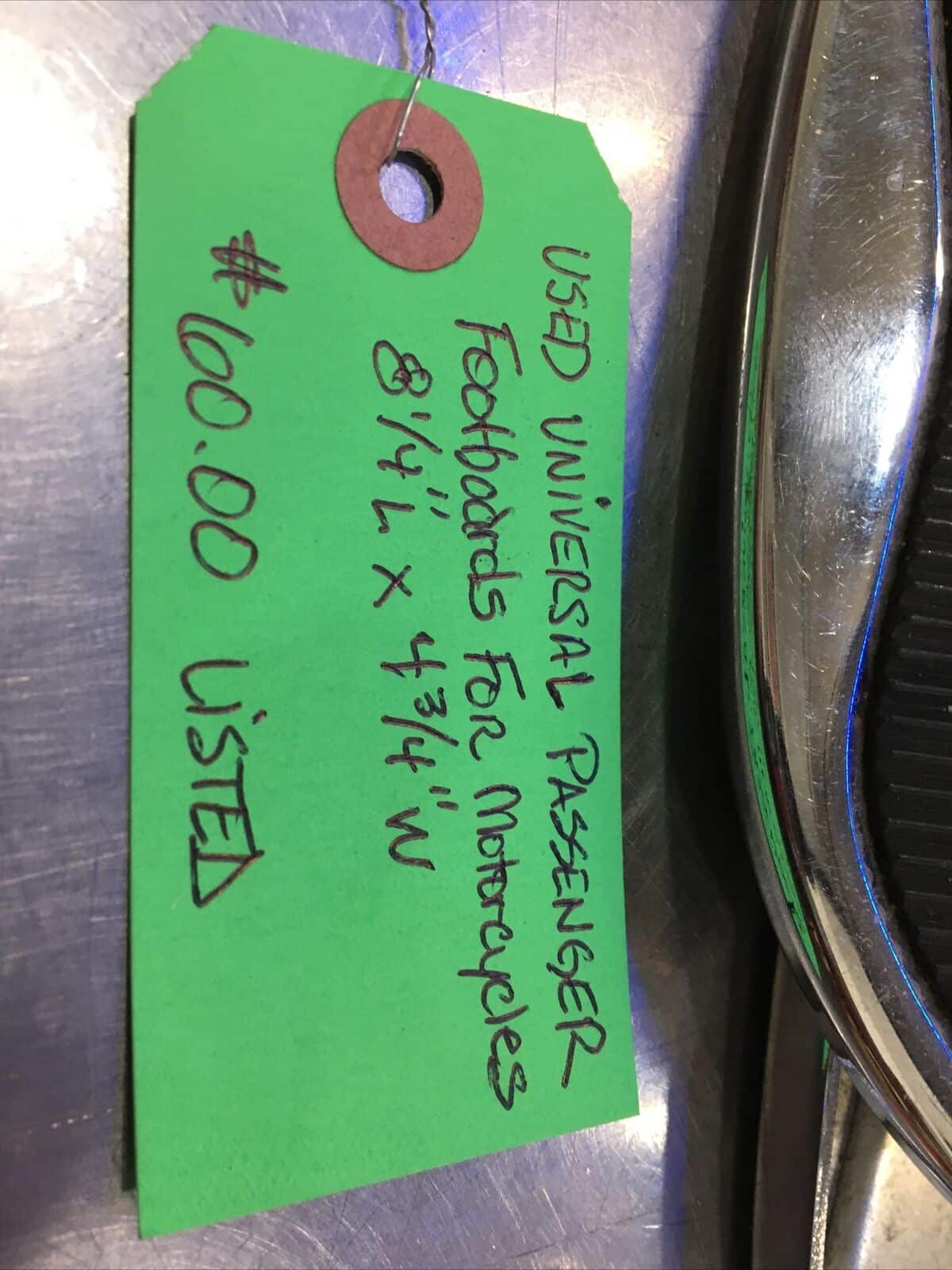 Universal Passenger Footboards for Motorcycles . Condition is used. Measures 8-1/4”L x 4-3/4” W buyer is responsible for fitment and applications