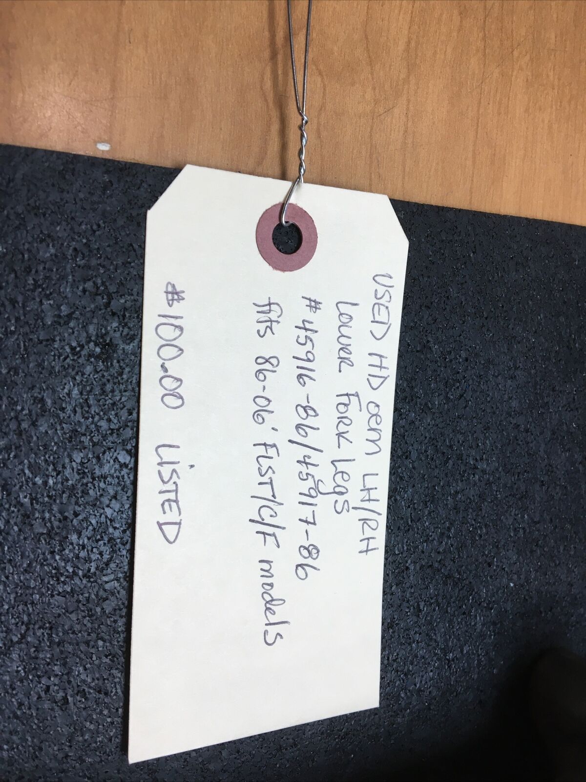 Harley Davidson oem LH/RH Lower Fork Legs #45916-86/45917-86. Condition is used. Fits 86-06’ FLST/C/F models buyer is responsible for fitment and applications