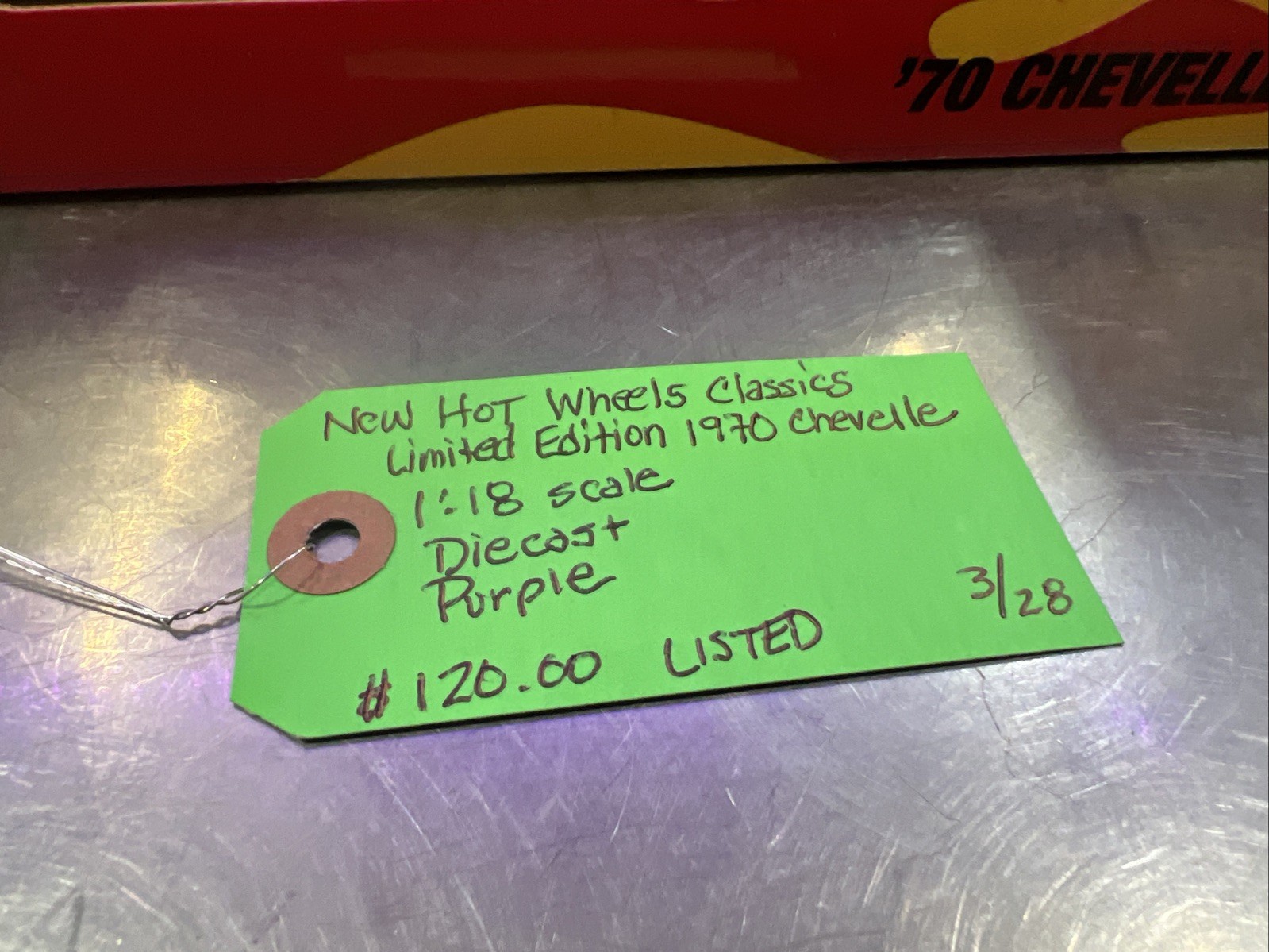 Hot Wheels Classics Limited Edition 1970 Chevelle. Condition is new. 1:18 scale, diecast, purple
