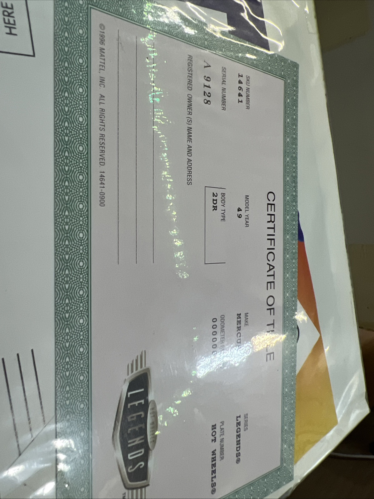 Hot Wheels Legends 1949 Mercury #A9128. Condition is new. 1:24 & 1:64 scale has certification.