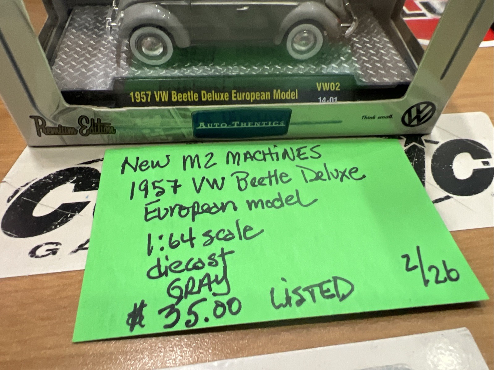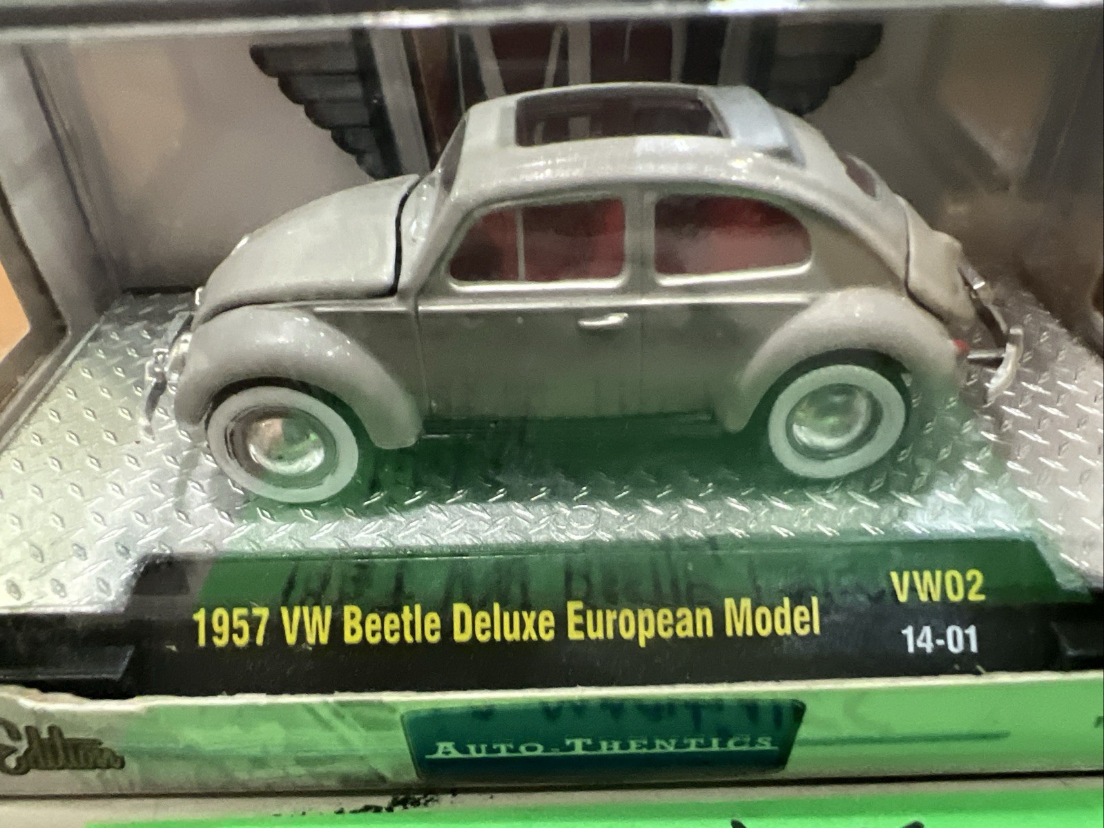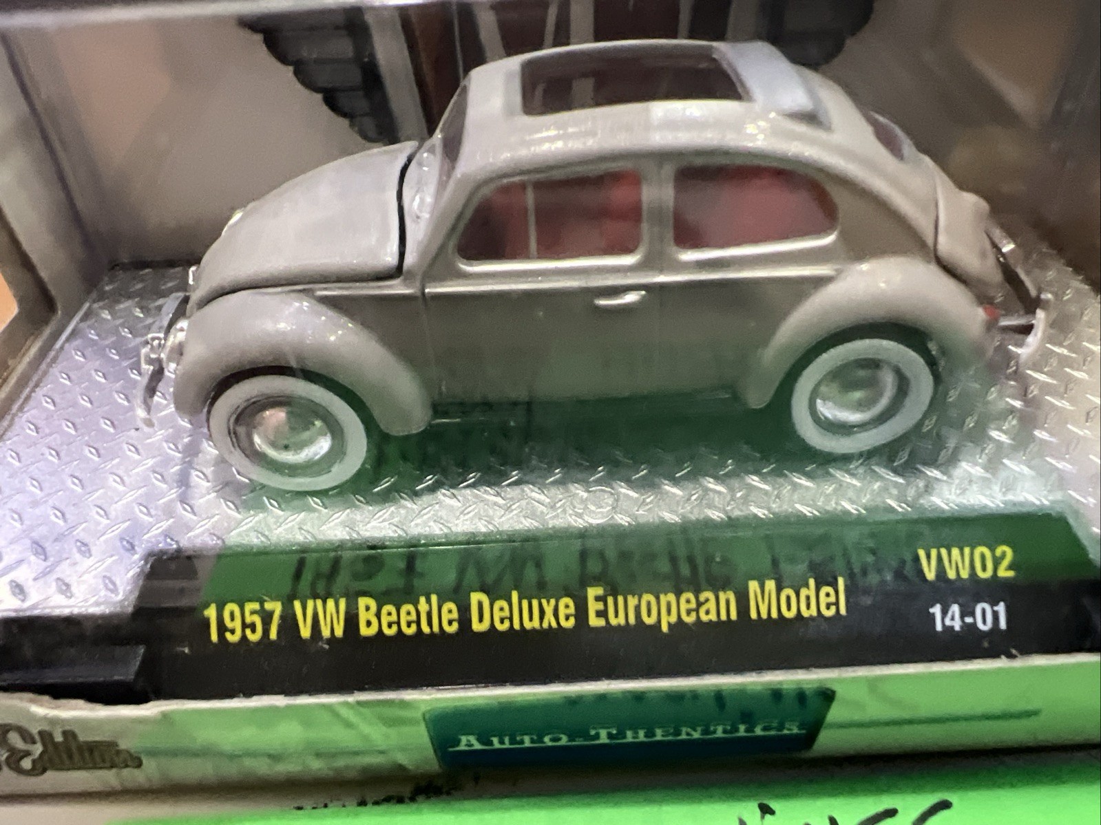 M2 Machines 1957 VW Beetle Deluxe European Model. Condition is new. 1:64 scale, diecast, Gray