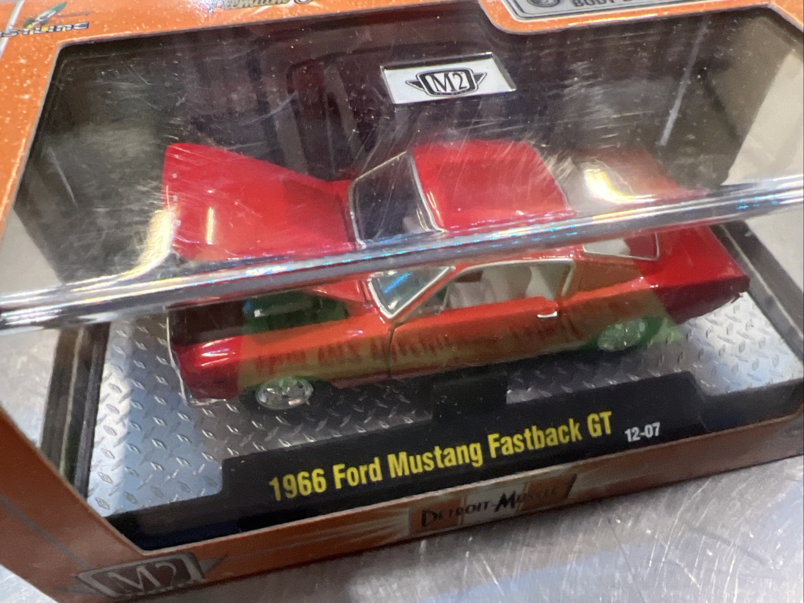M2 Machines Detroit-Muscle 1966 Ford Mustang Fastback GT. Condition is new. 1:64 scale, diecast, Red