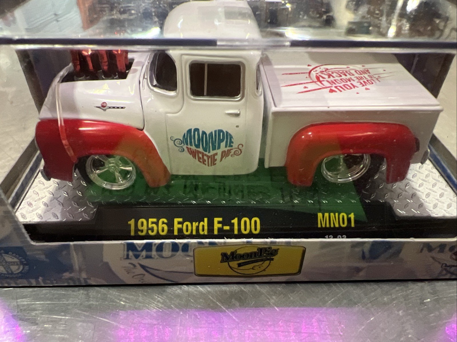 M2 Machines Moon Pie 1956 Ford F-100. Condition is new. 1:64 scale, diecast, White/Red