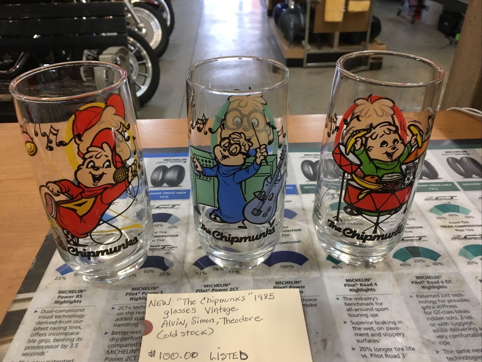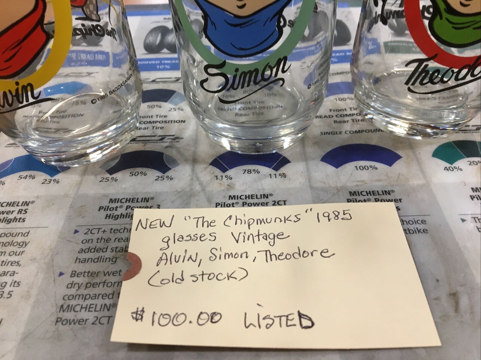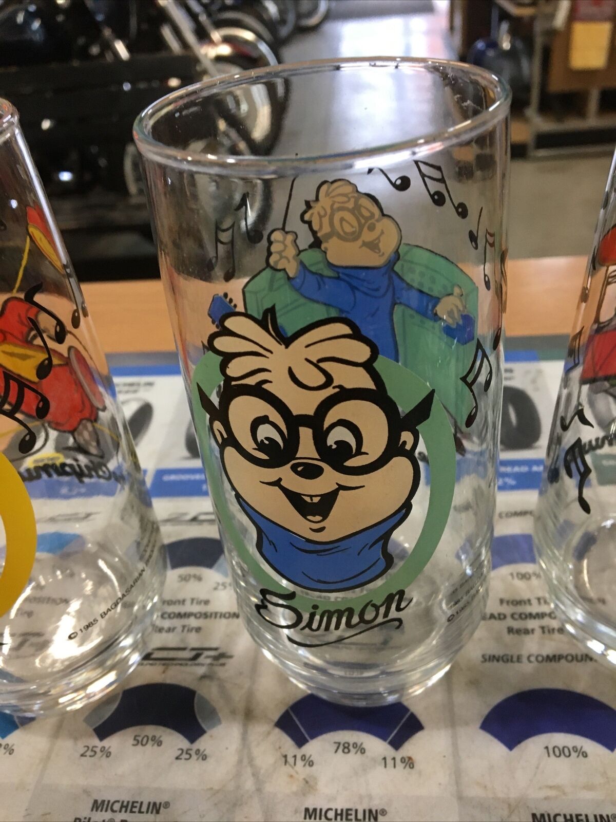 The Chipmunks Vintage Glasses 1985. Condition is new. Old stock. Alvin, Simon, Theodore. Hardee’s Collector Glasses